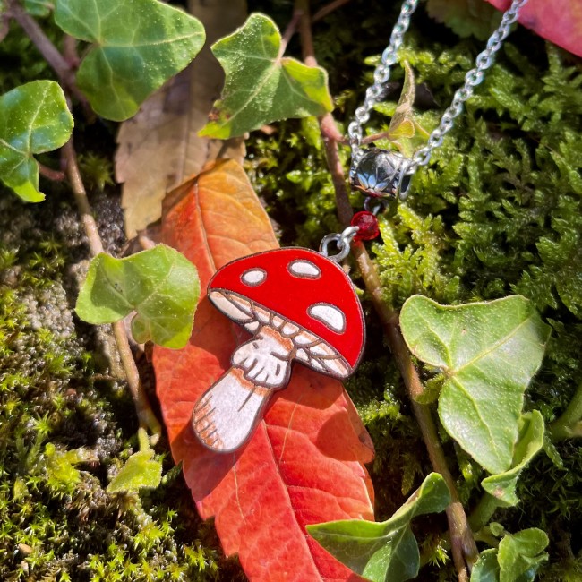 pendentif déssiné et découpé par Anark Grafik, puis poncé, peint, verni et monté par mes soins.