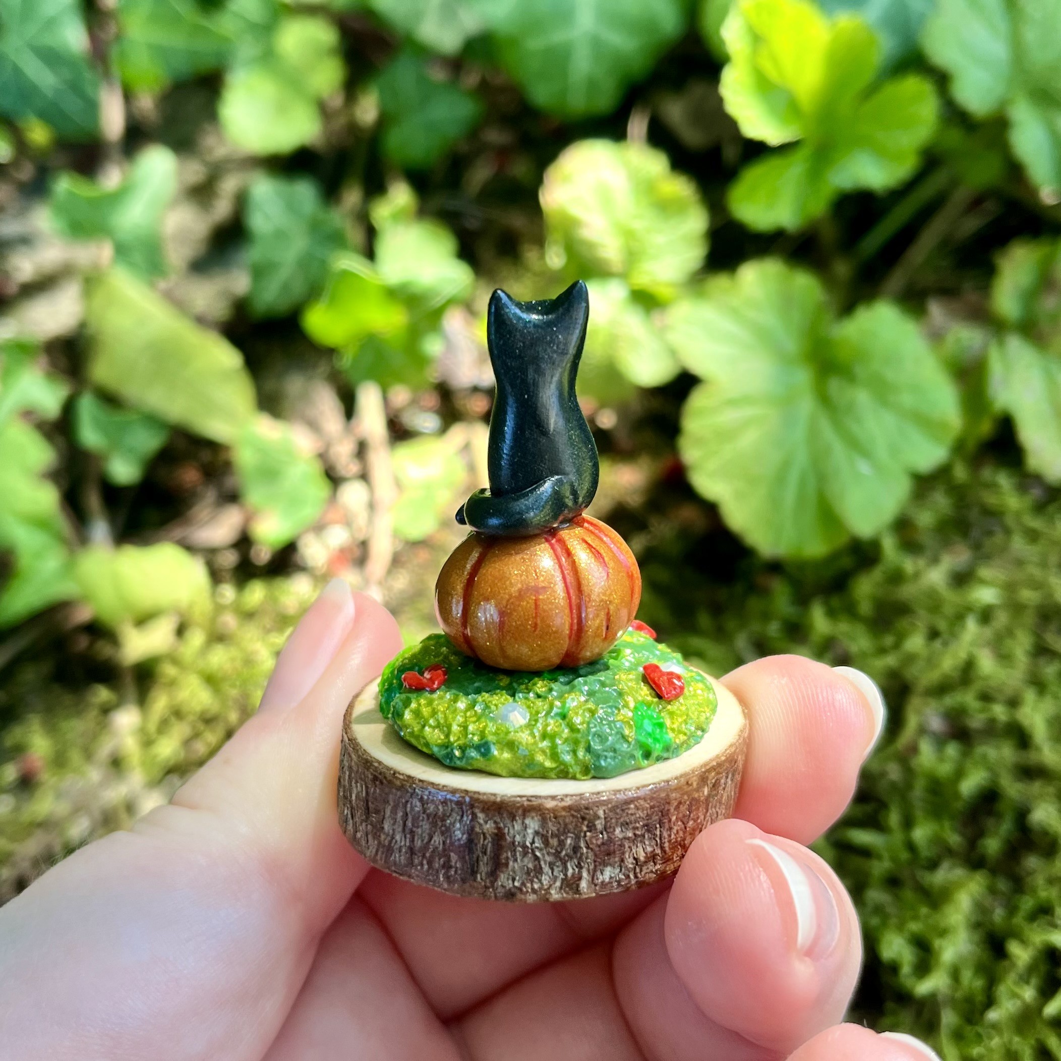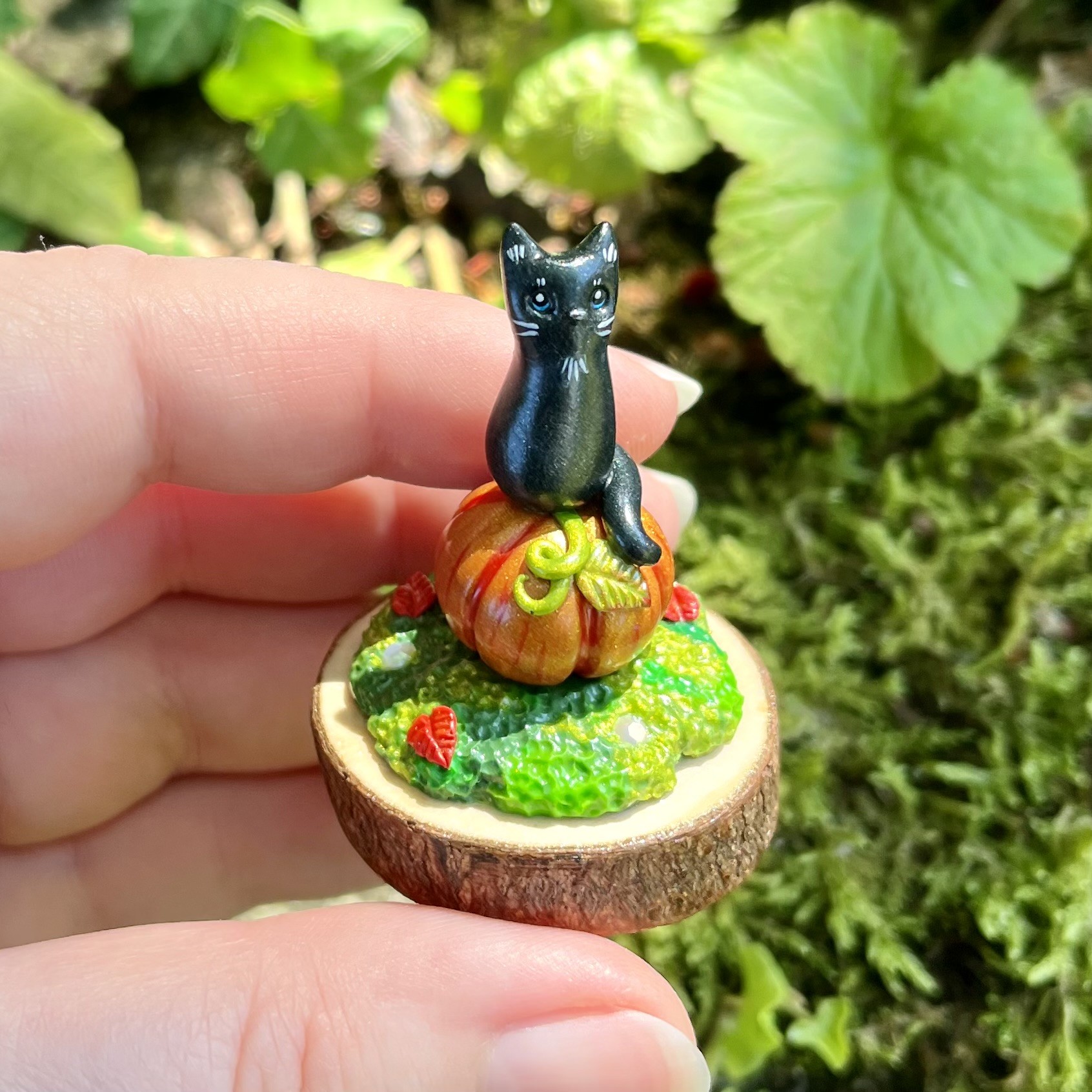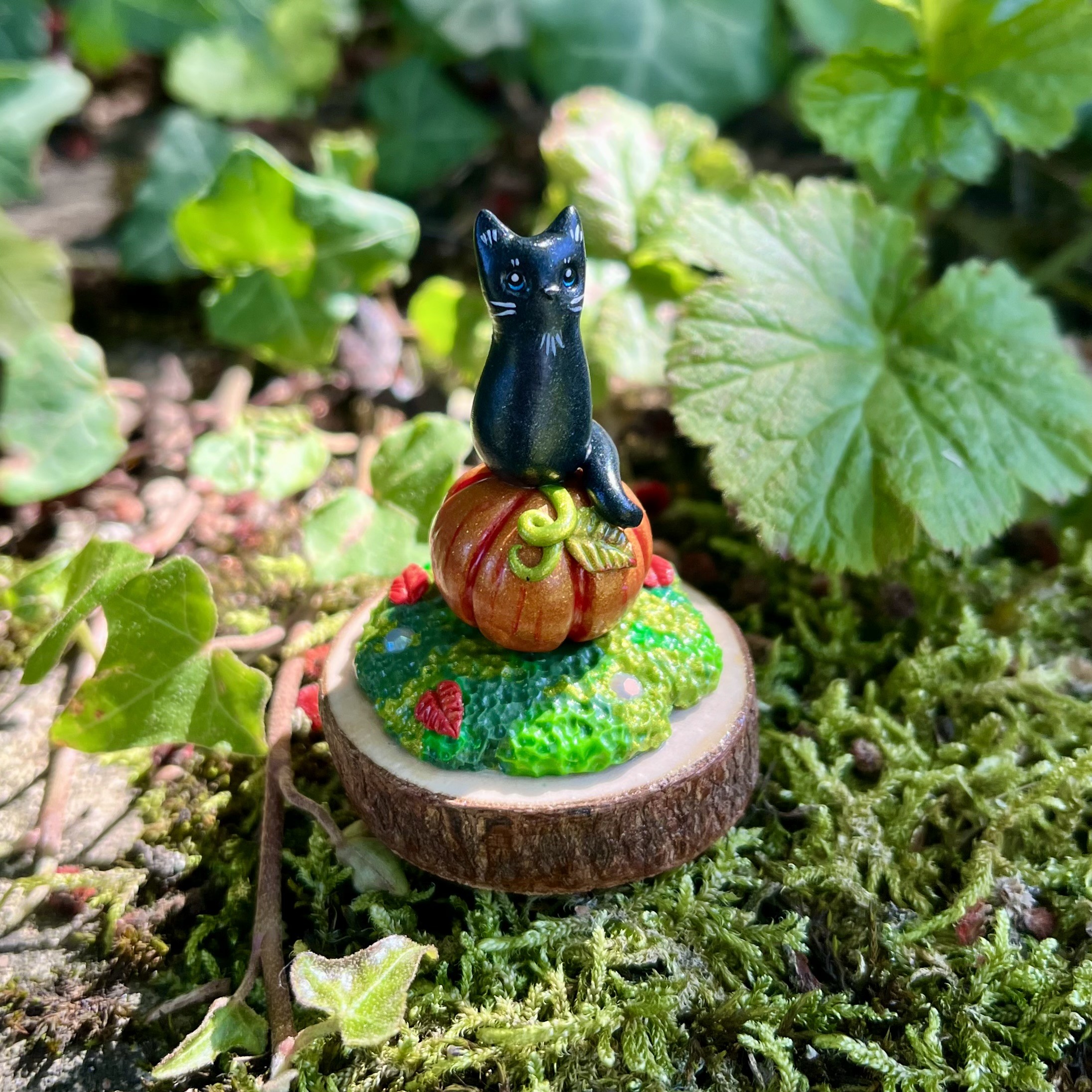 ✰ Figurine chat entièrement faite main en pâte polymère, les détails ont été peints à la main et la figurine a ensuite été entièrement vernie puis collée sur une base en bois.