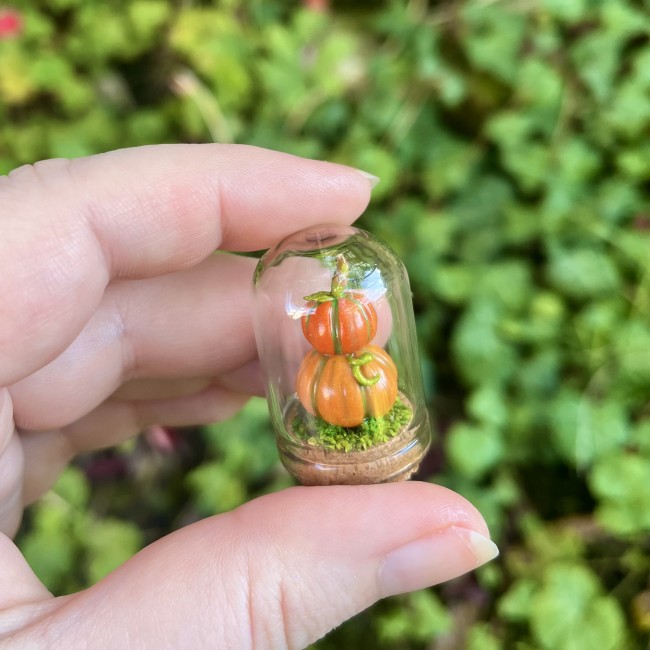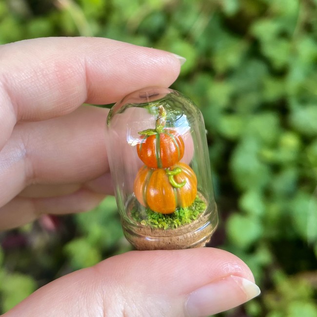 Citrouilles modelées à la main en pâte polymère, base de cloche en liège