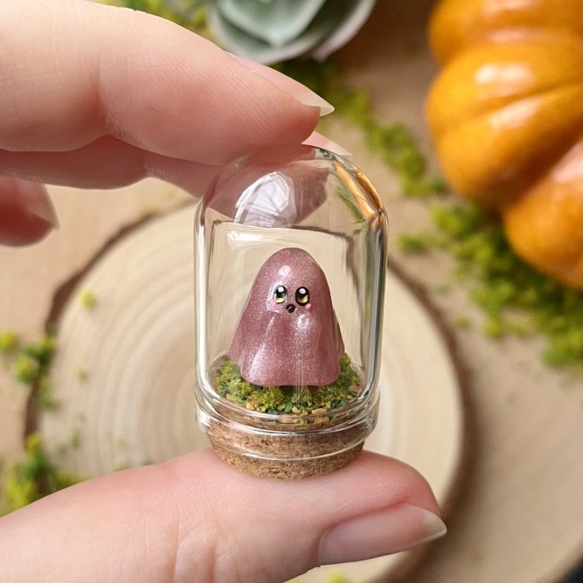 ✰ Figurine fantôme sous mini cloche en verre