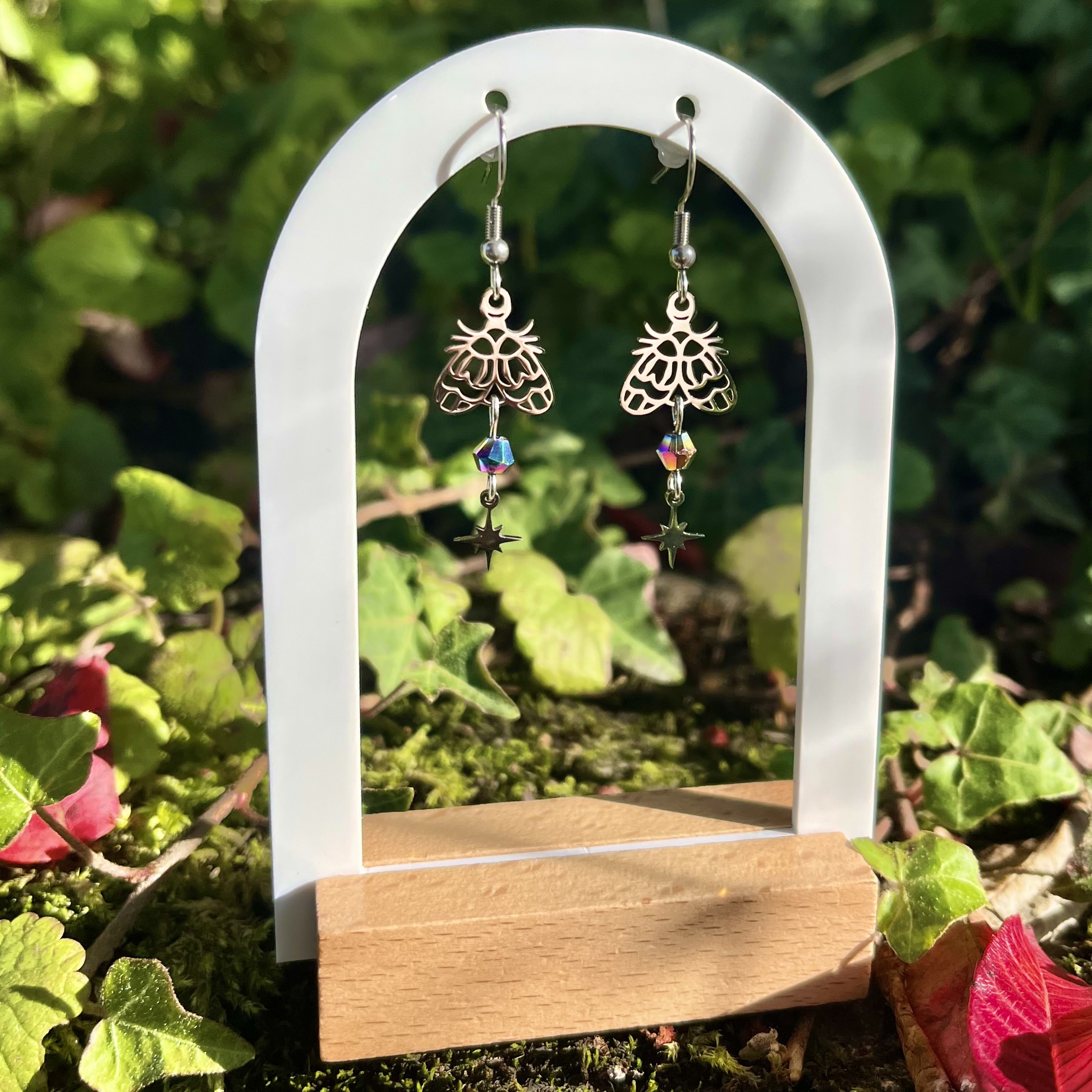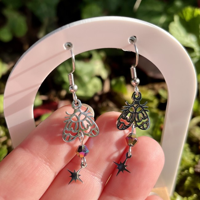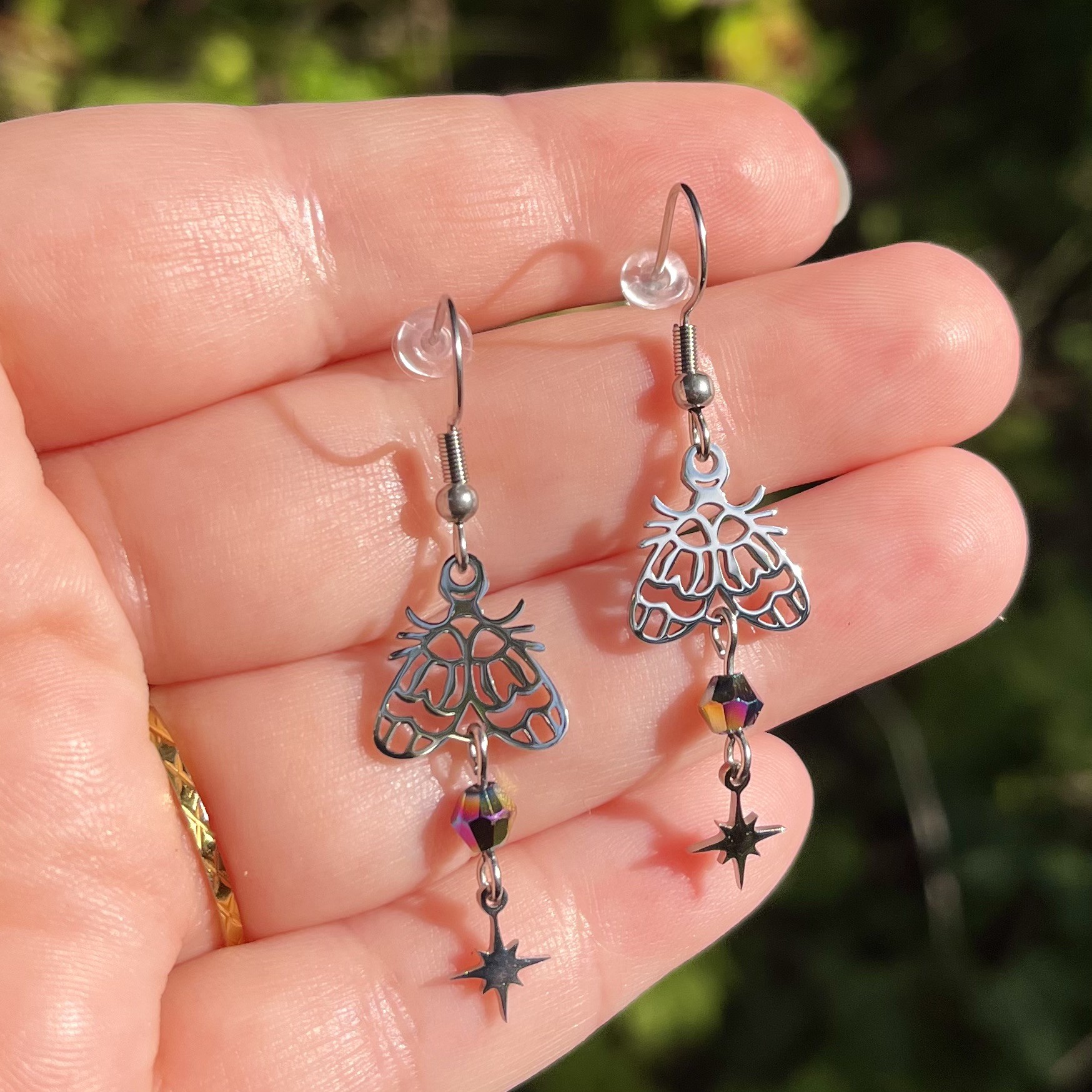✰ Paire de boucles d'oreilles papillons montée main, avec breloques en acier inoxydable et perles en verre.