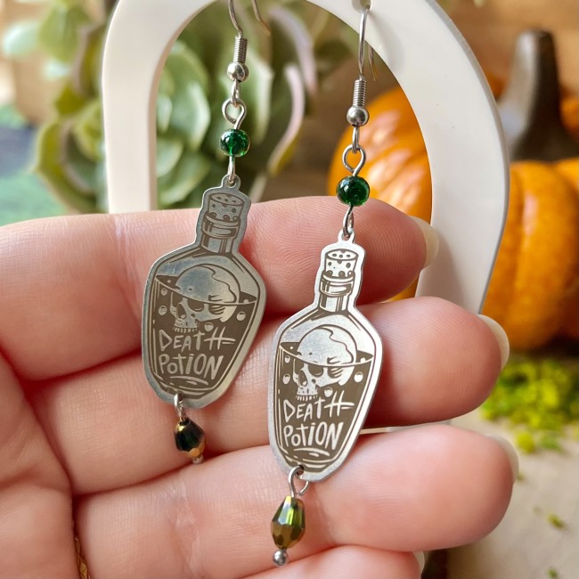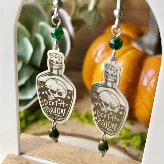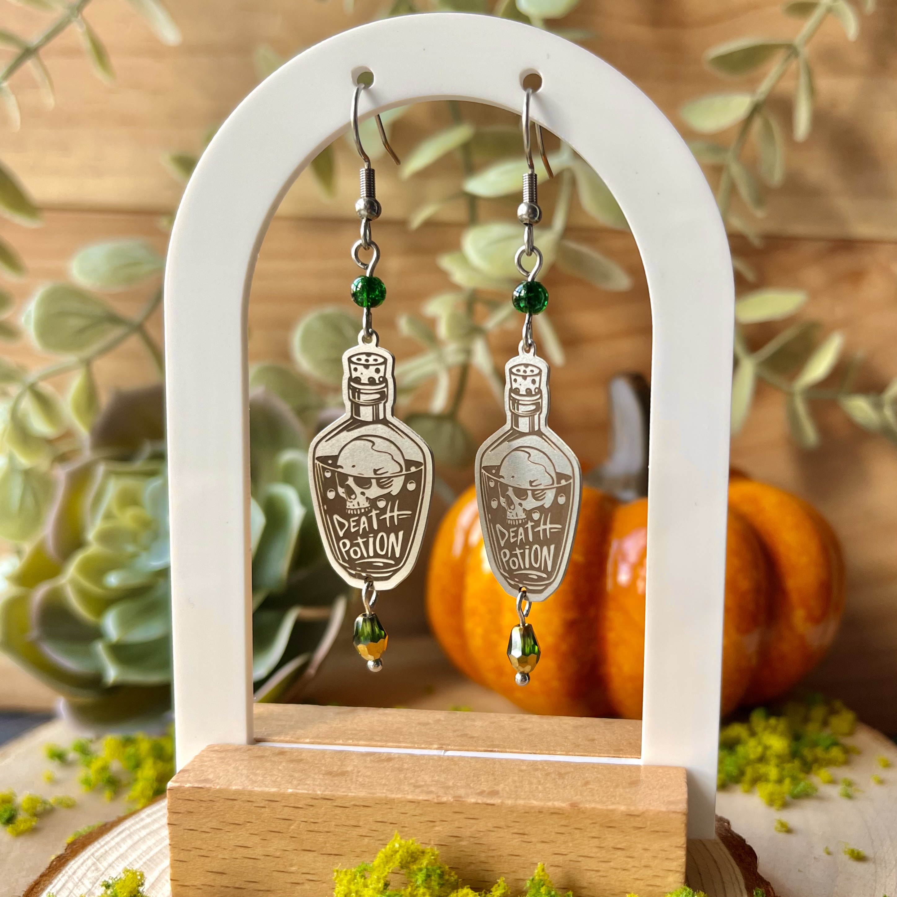 ✰ Paire de boucles d'oreilles potions montée main, avec breloques en acier inoxydable et perles en verre.