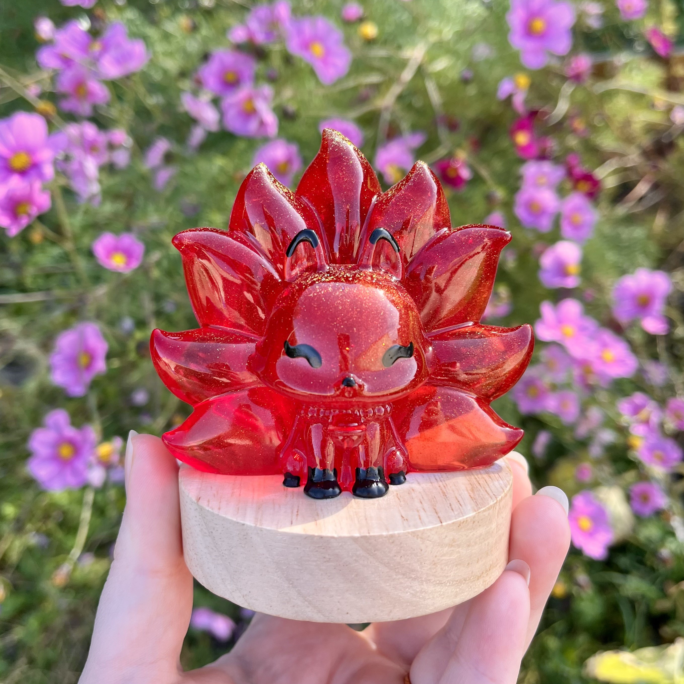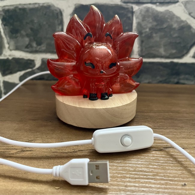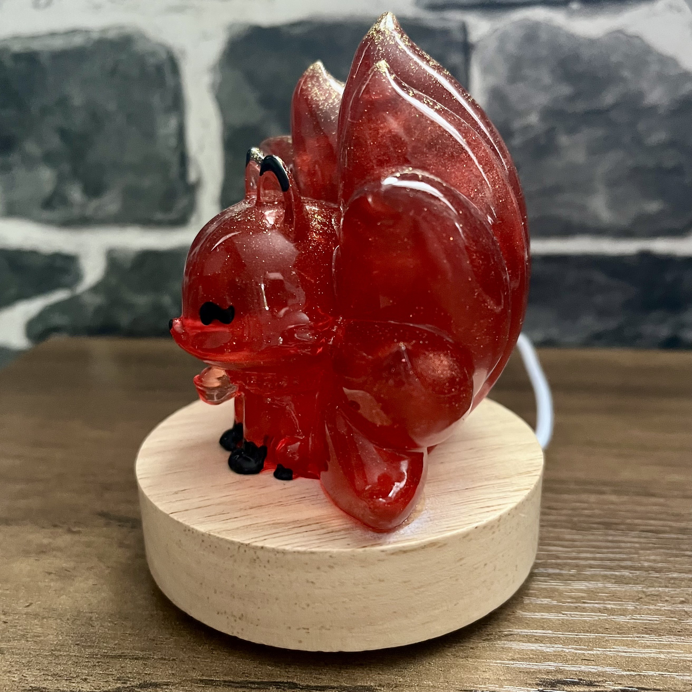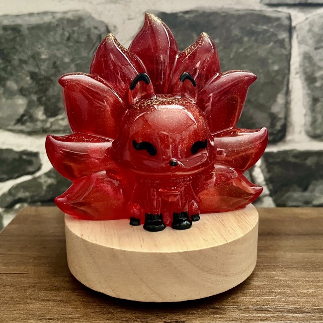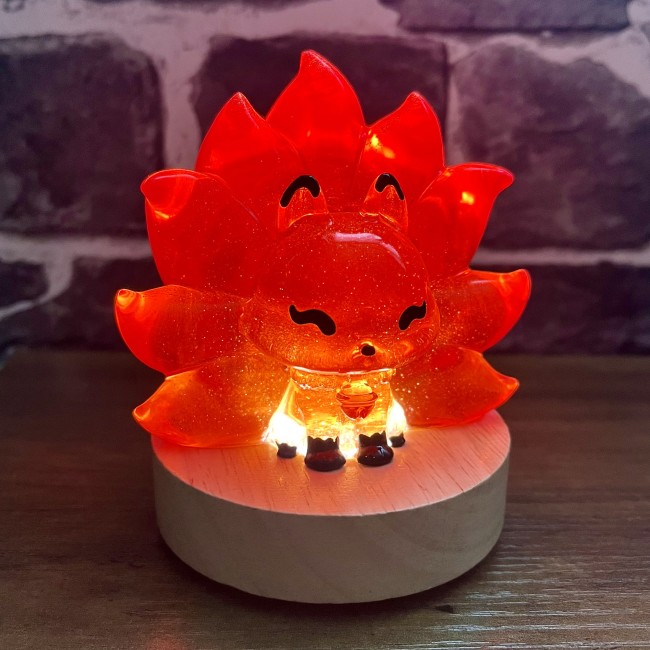 ✰ Lampe Kitsune, faite main en résine epoxy avec inclusion de fines paillettes.