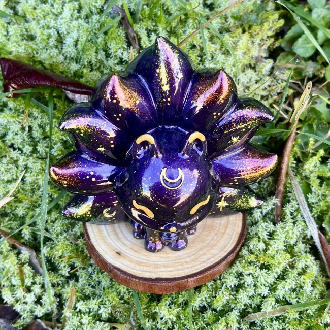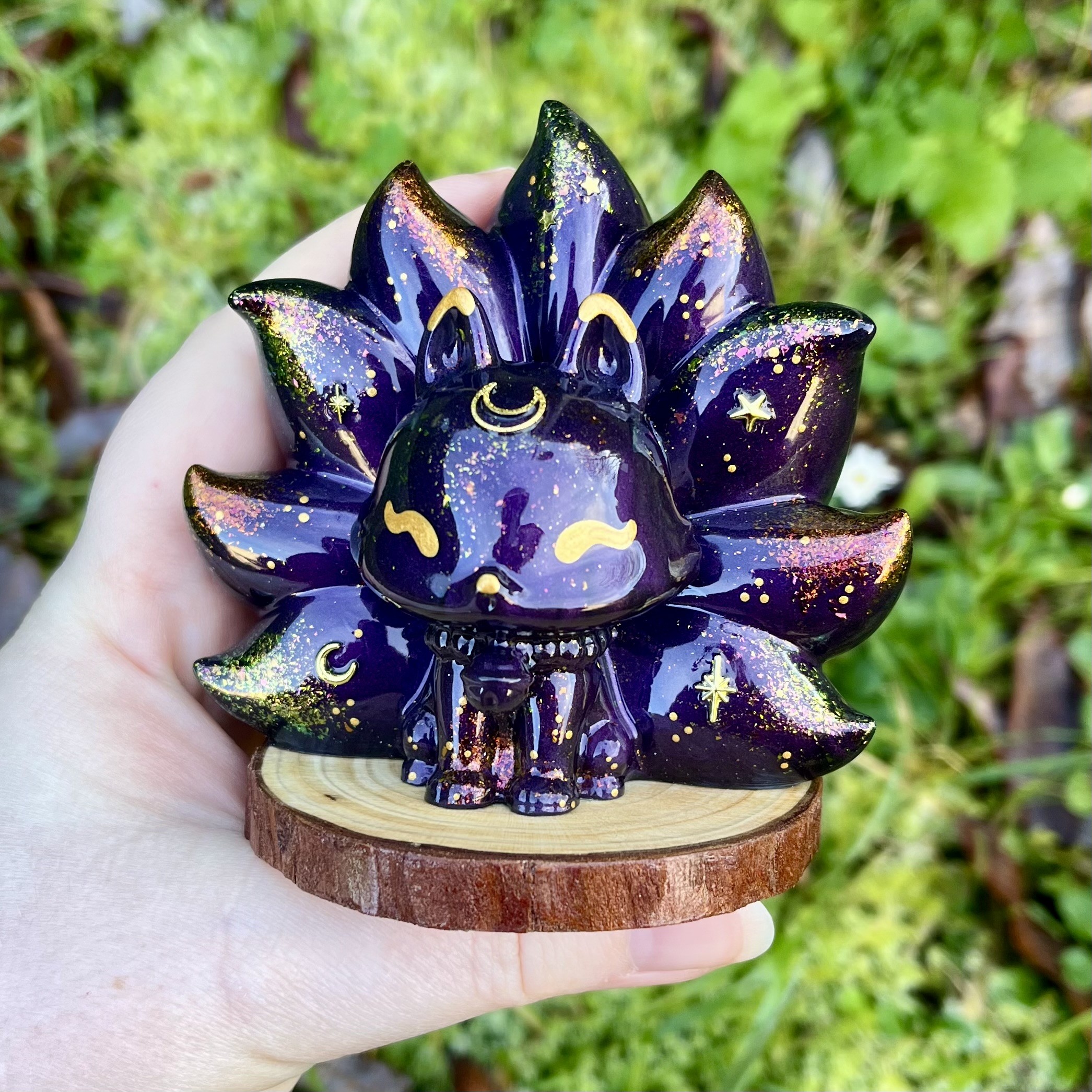 âś° Figurine Kitsune, faite main en résine epoxy avec inclusion de paillettes et pigments irisés.