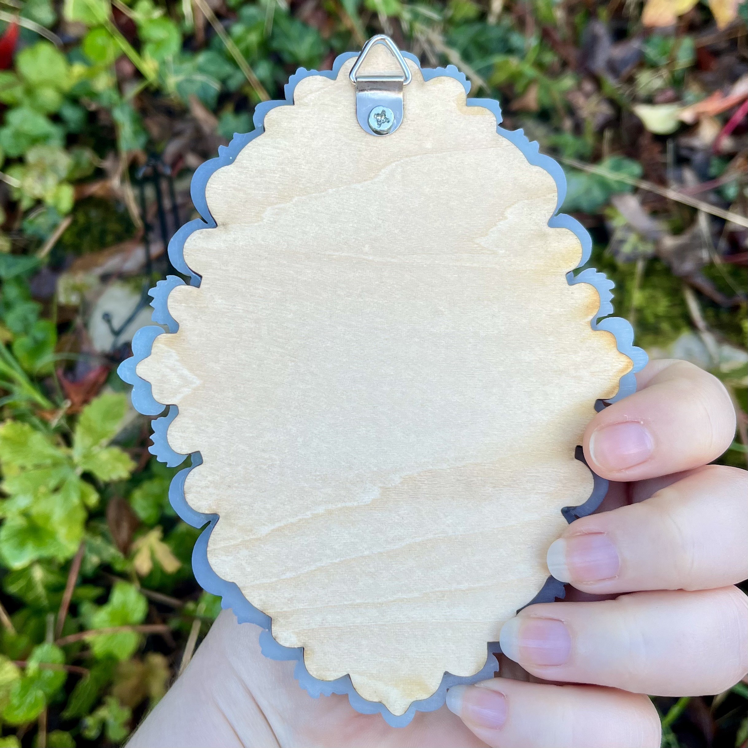 Le cadre est egalement fait main en résine, peint à la main et verni, le fond en bois a été découpé sur mesure par Anark Grafik.
