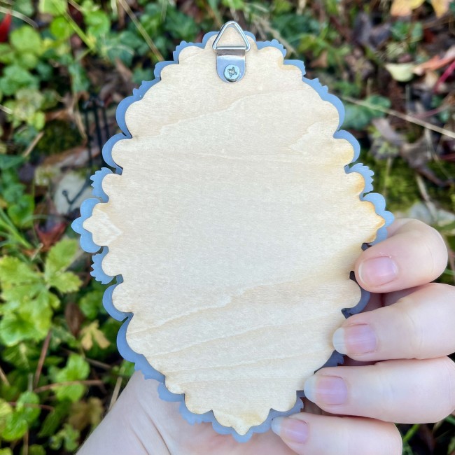 Un crochet mural est vissé au dos si vous souhaitez l'accrocher au mur et un chevalet en métal vous sera également envoyé avec la déco.