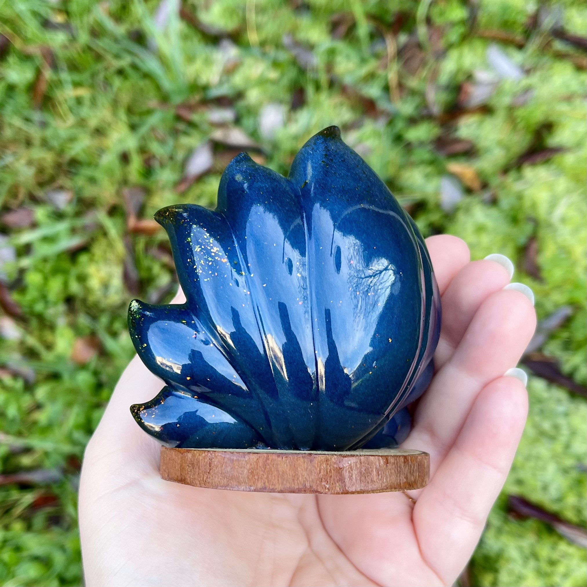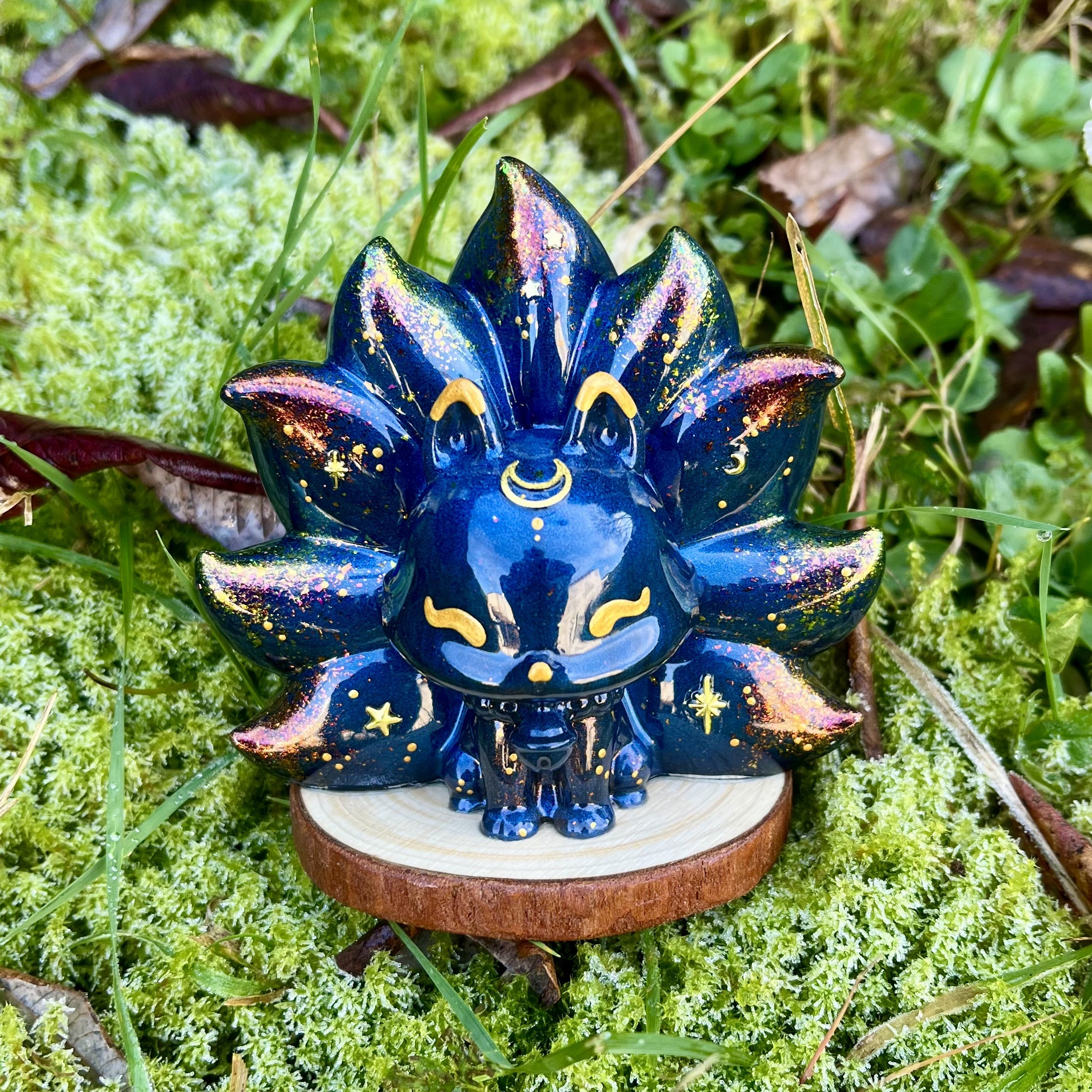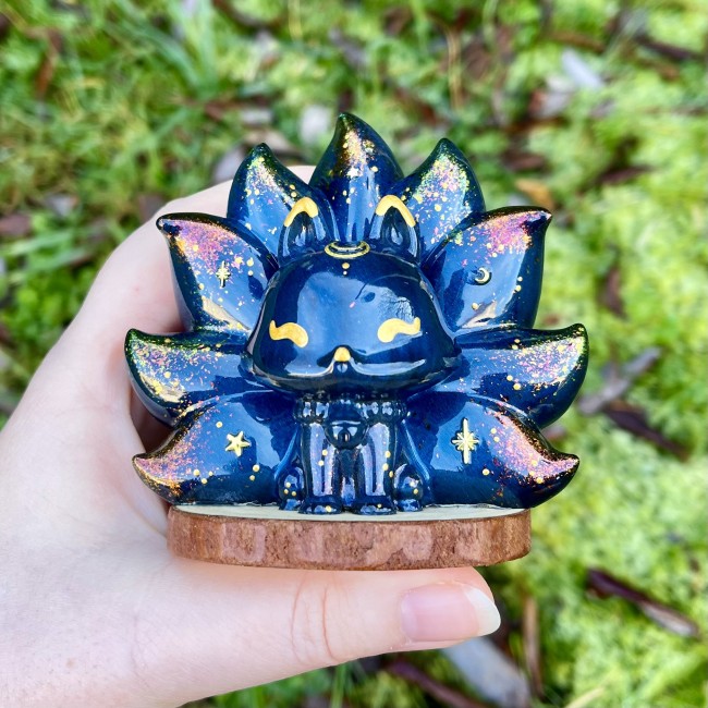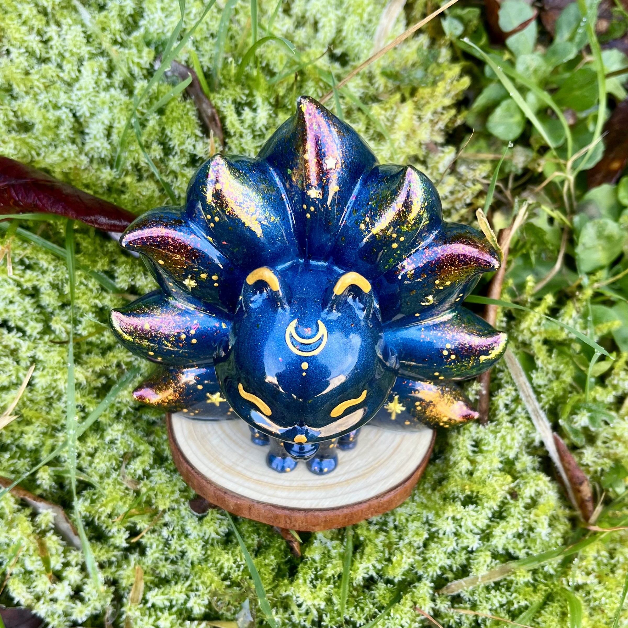 âś° Figurine Kitsune, faite main en résine epoxy avec inclusion de paillettes et pigments irisés.