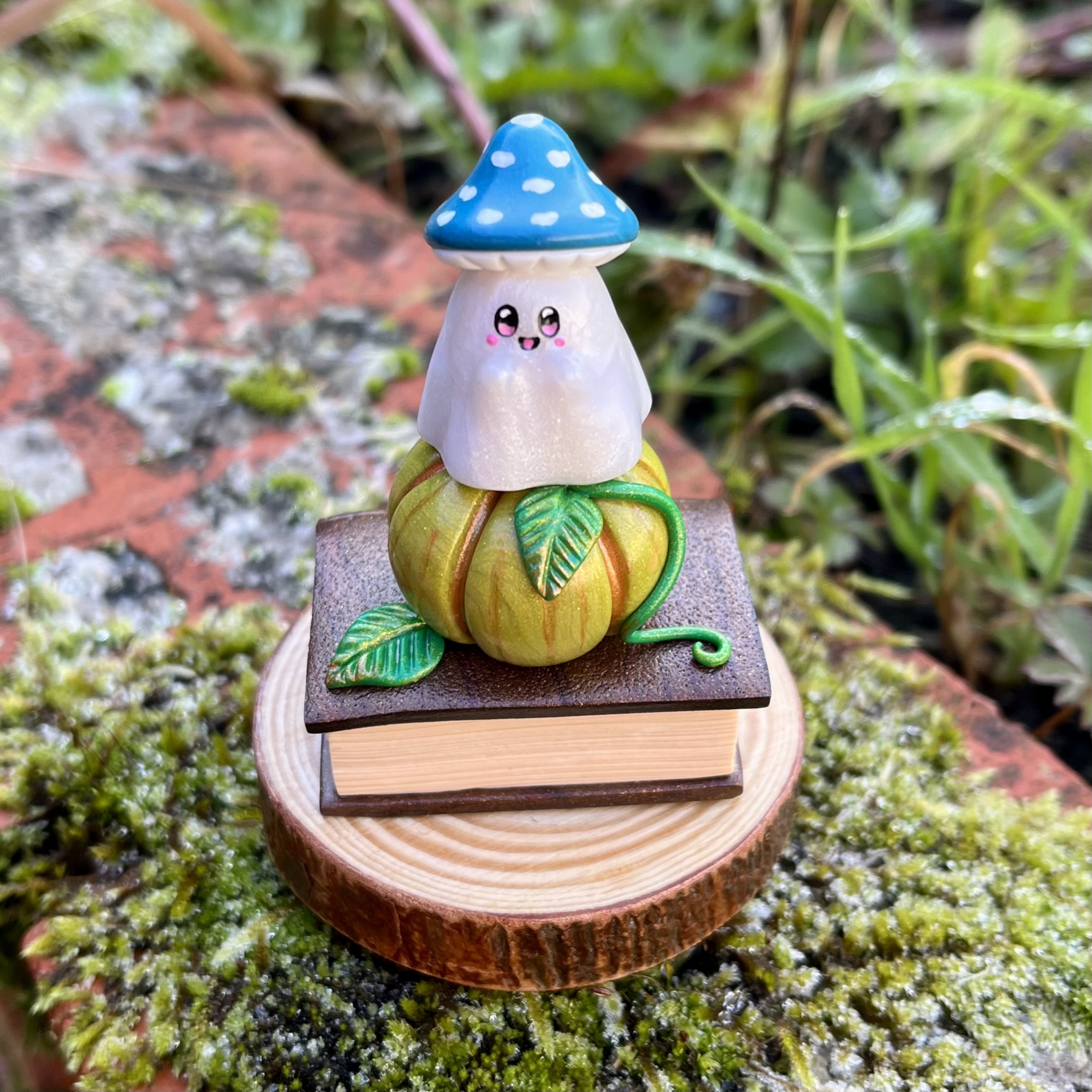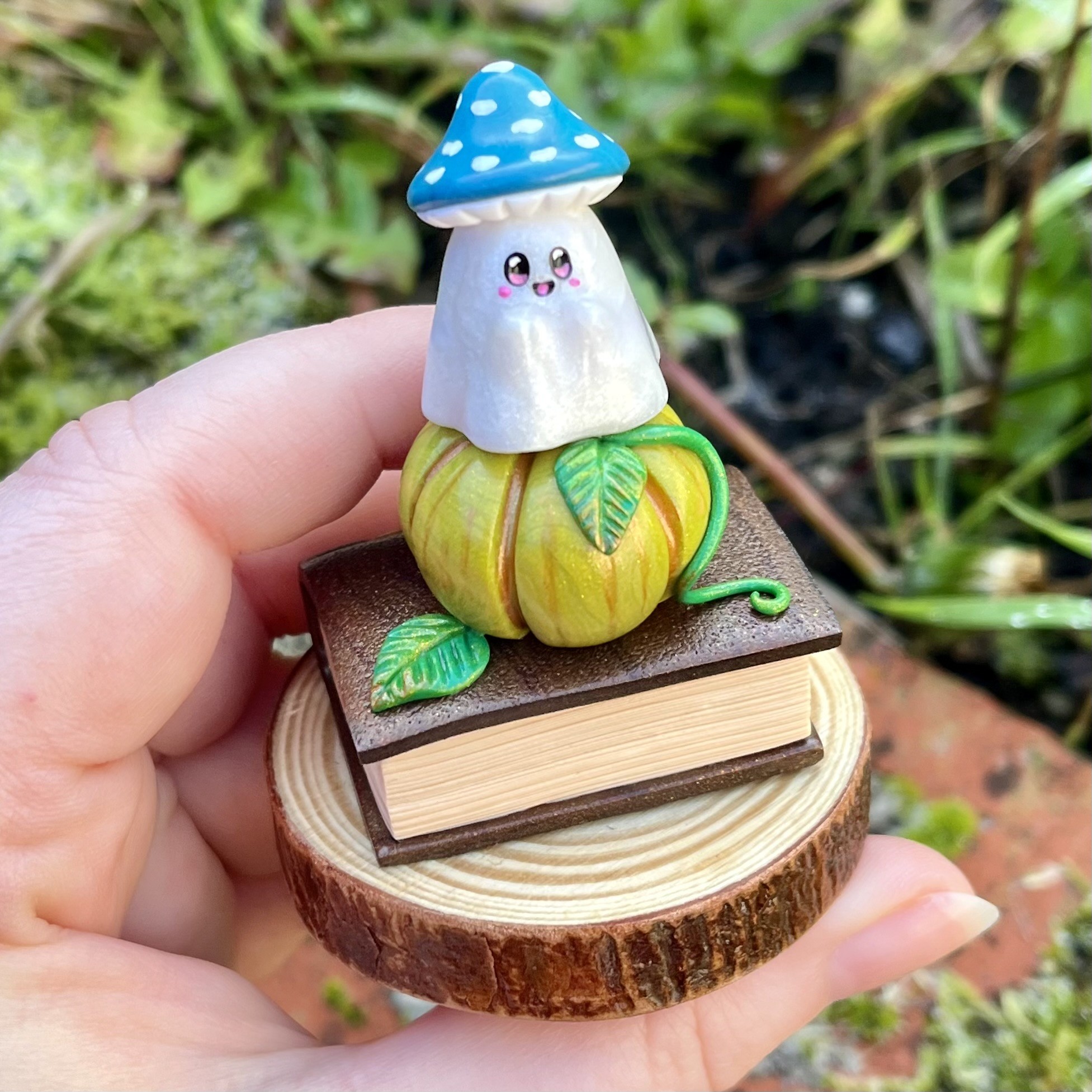 ✰ Figurine fantôme entièrement faite main en pâte polymère, les détails ont été peints à la main et la figurine a ensuite été entièrement vernie puis collée sur une base en bois.