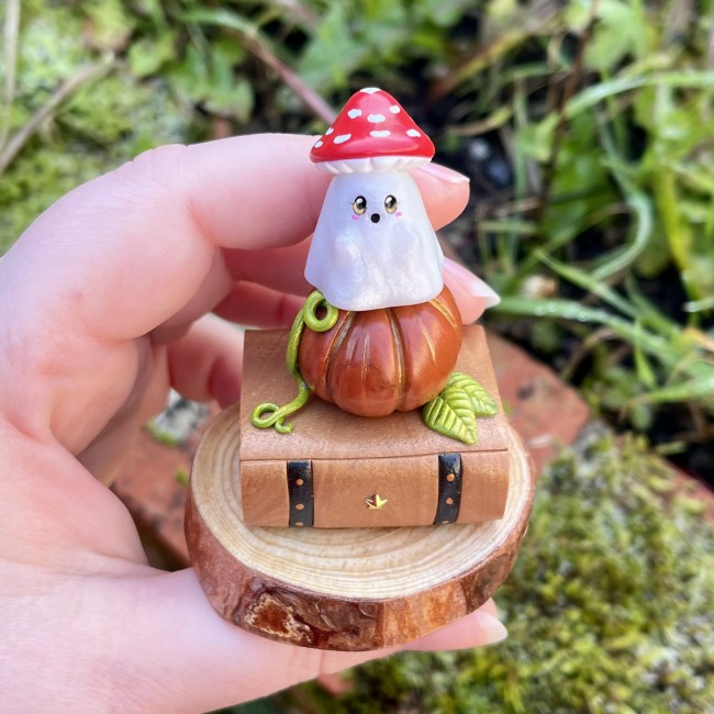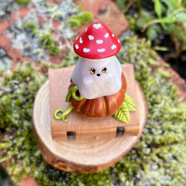 ✰ Figurine fantôme entièrement faite main en pâte polymère, les détails ont été peints à la main et la figurine a ensuite été entièrement vernie puis collée sur une base en bois.