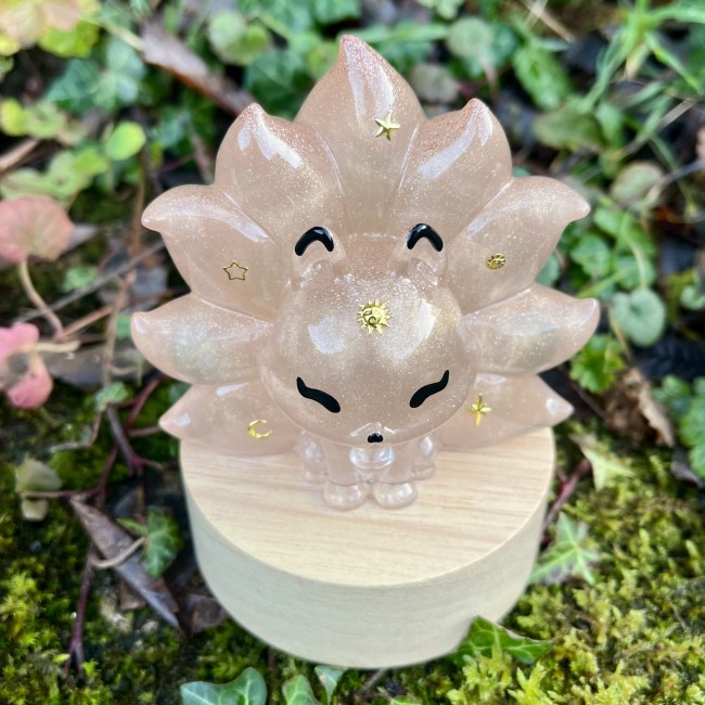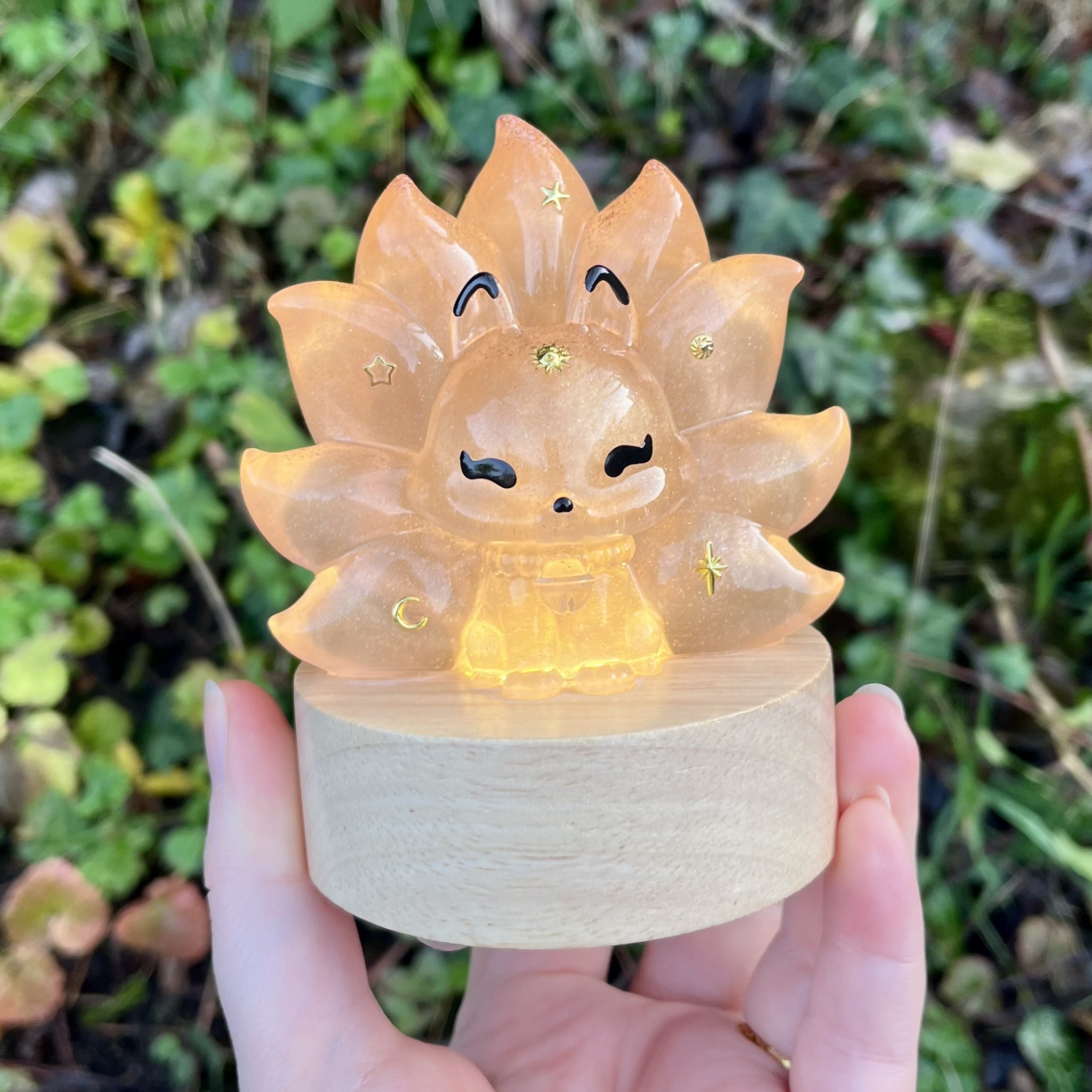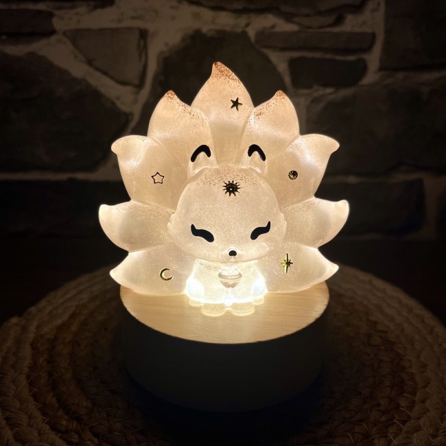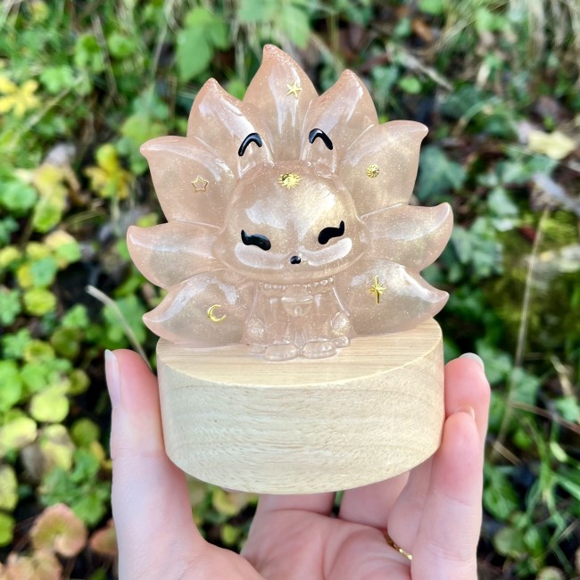 ✰ Lampe Kitsune, faite main en résine epoxy avec inclusion de fines paillettes.