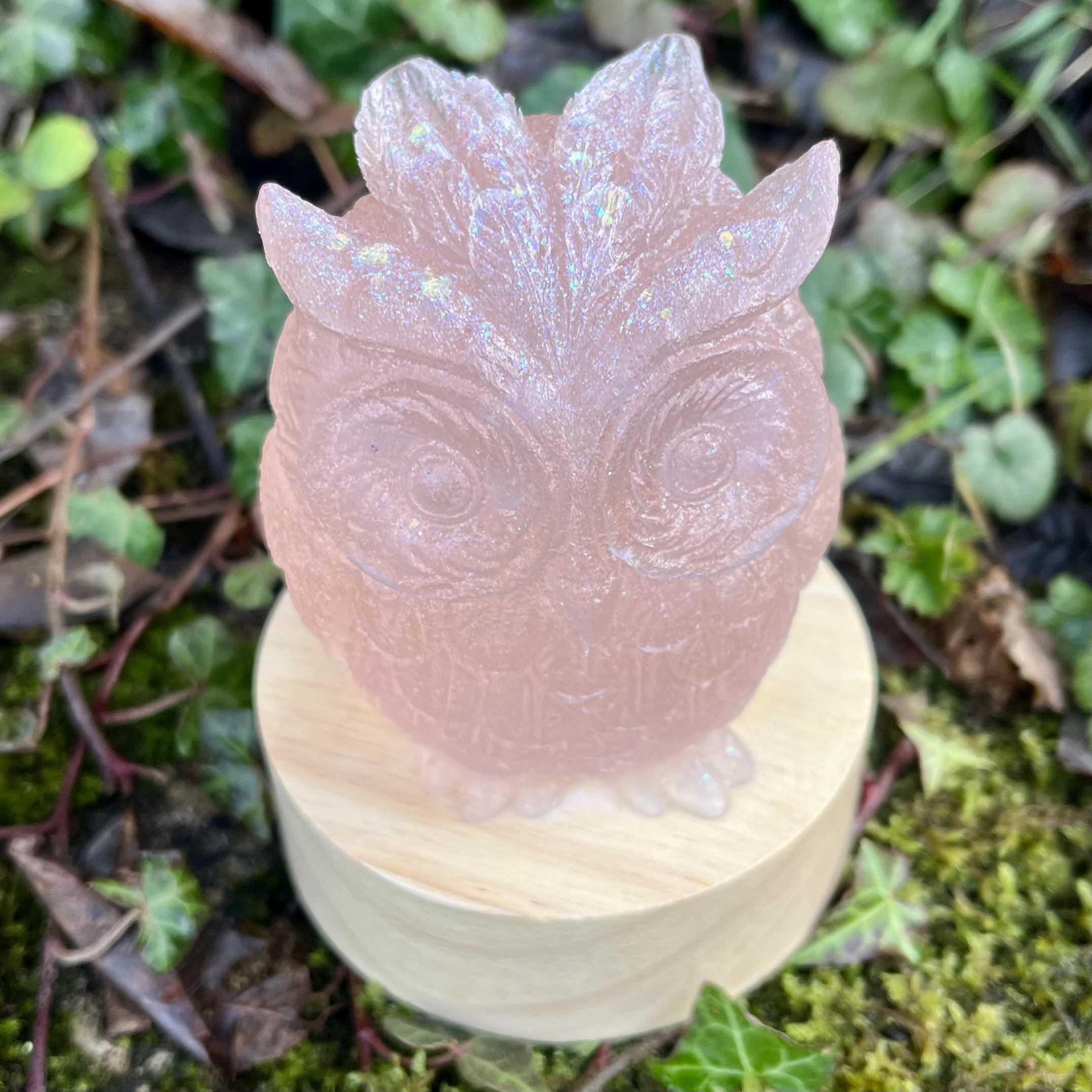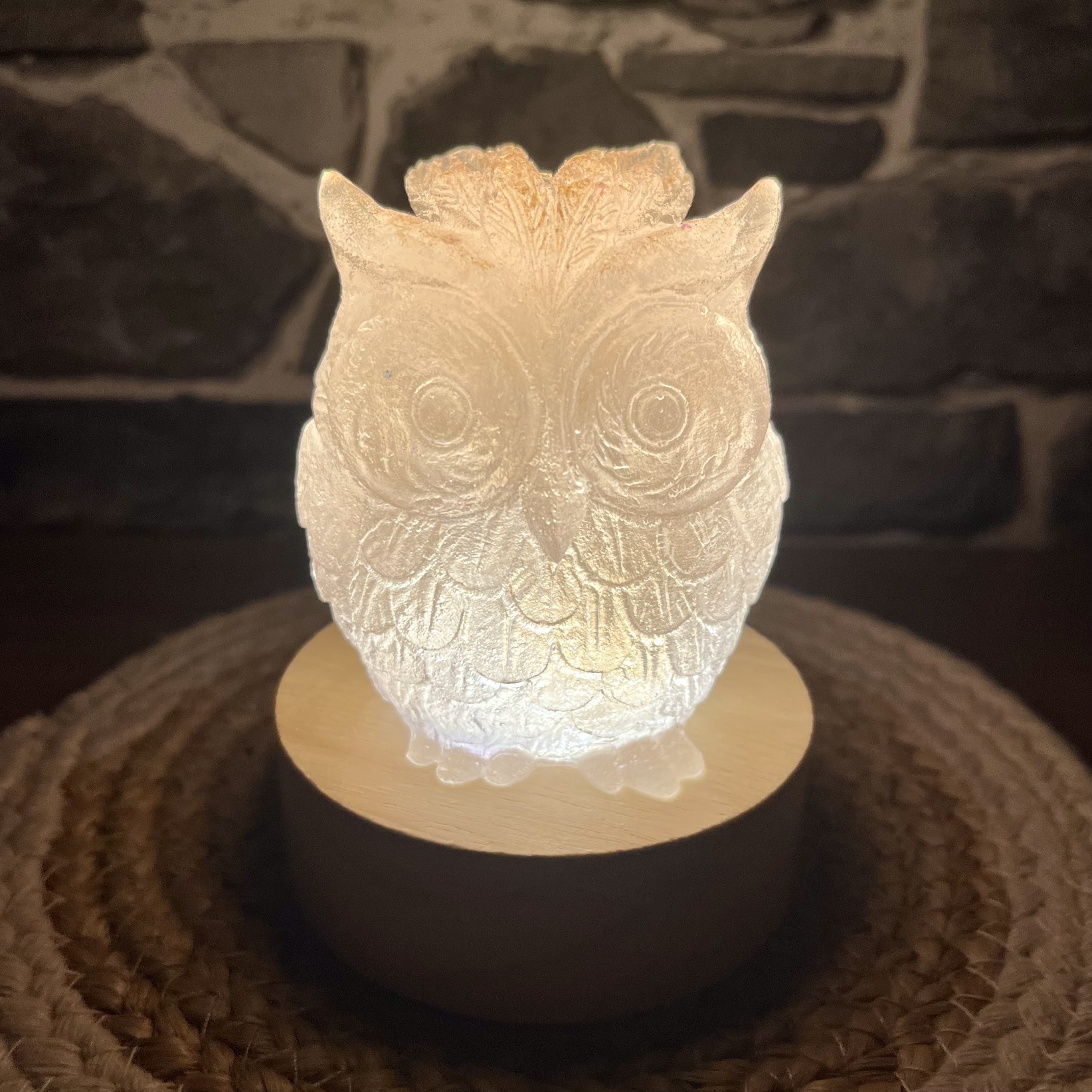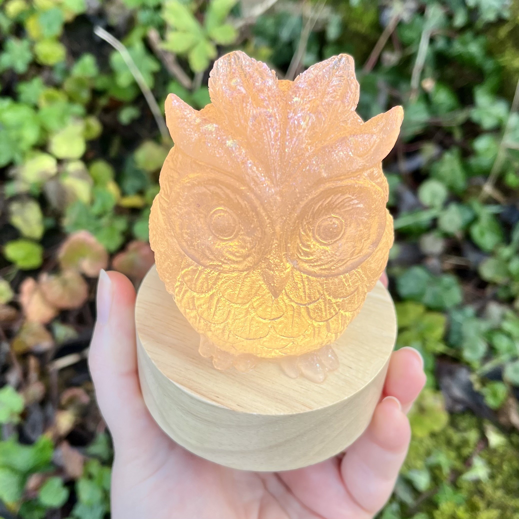 ✰ Lampe hibou, faite main en résine epoxy avec inclusion de fines paillettes.