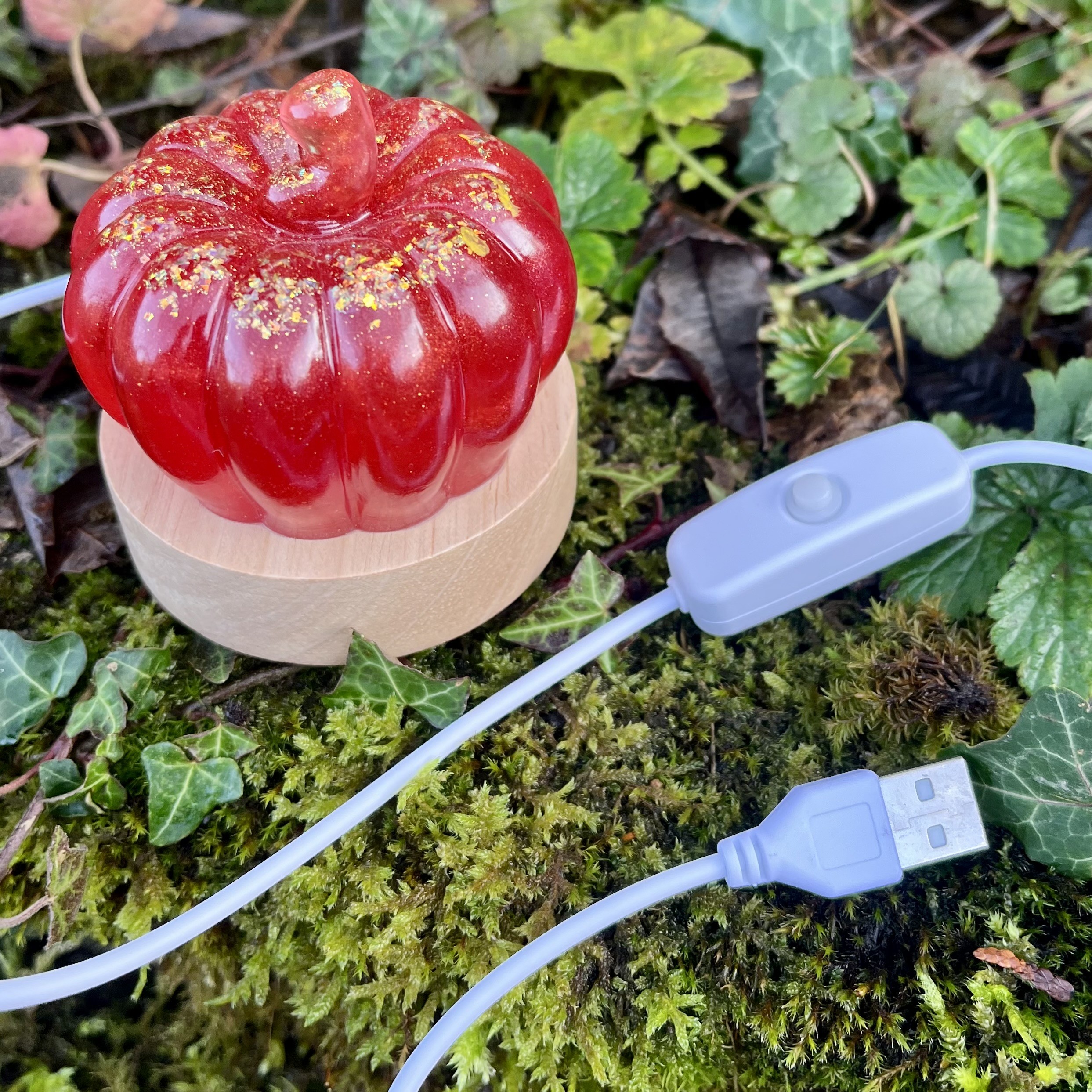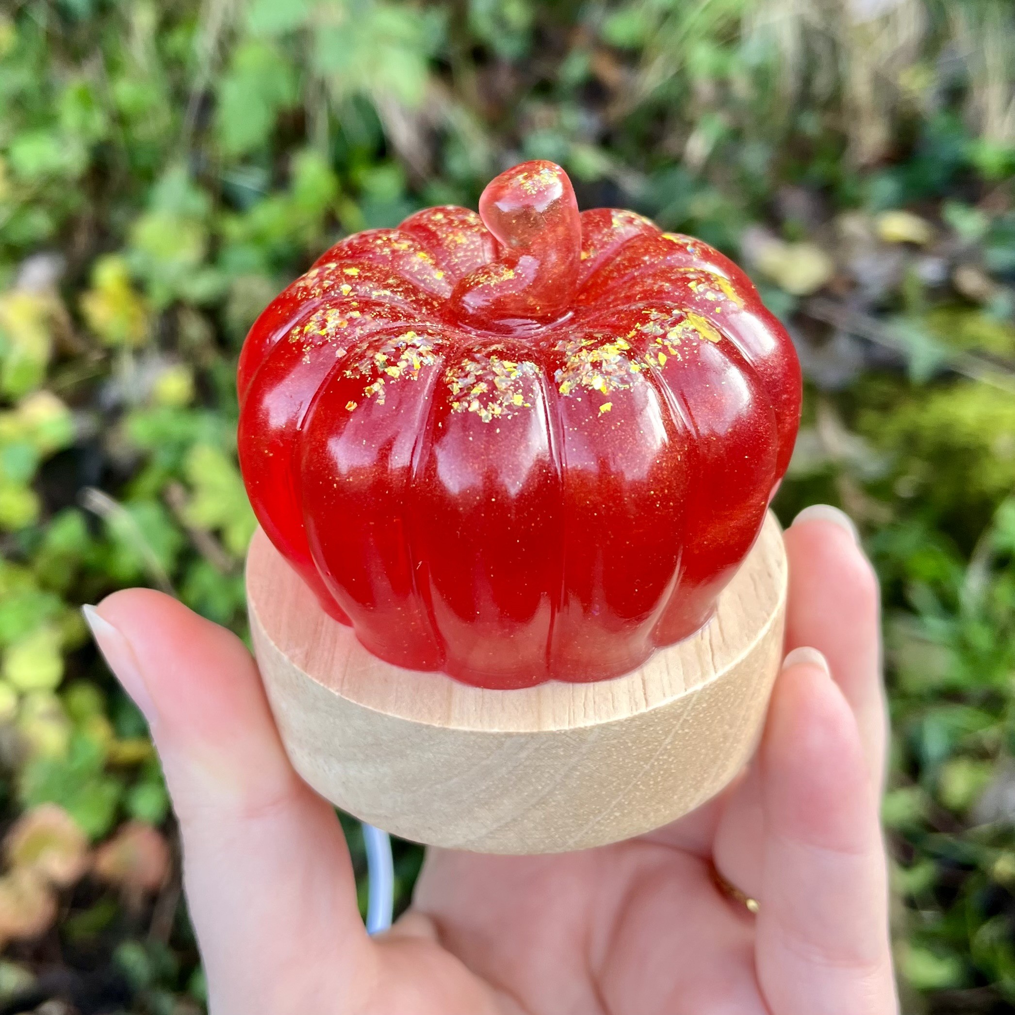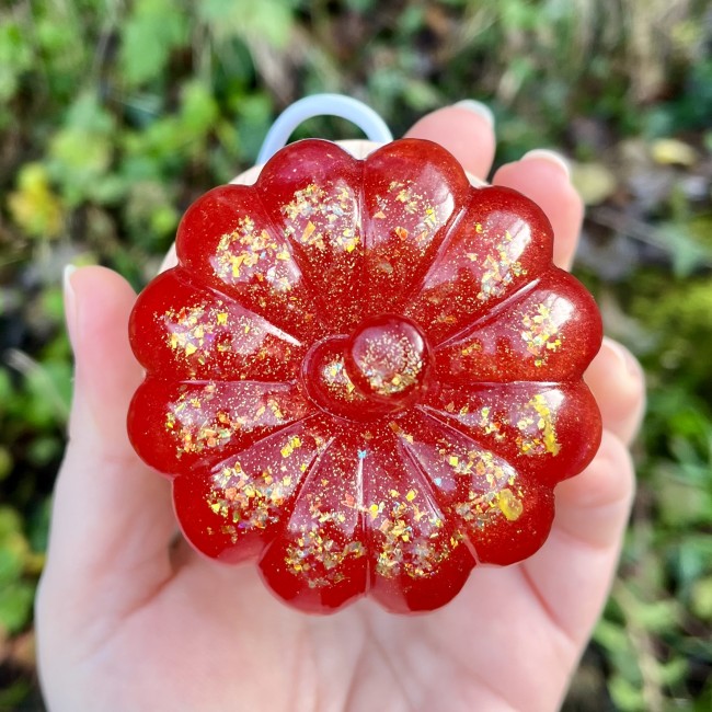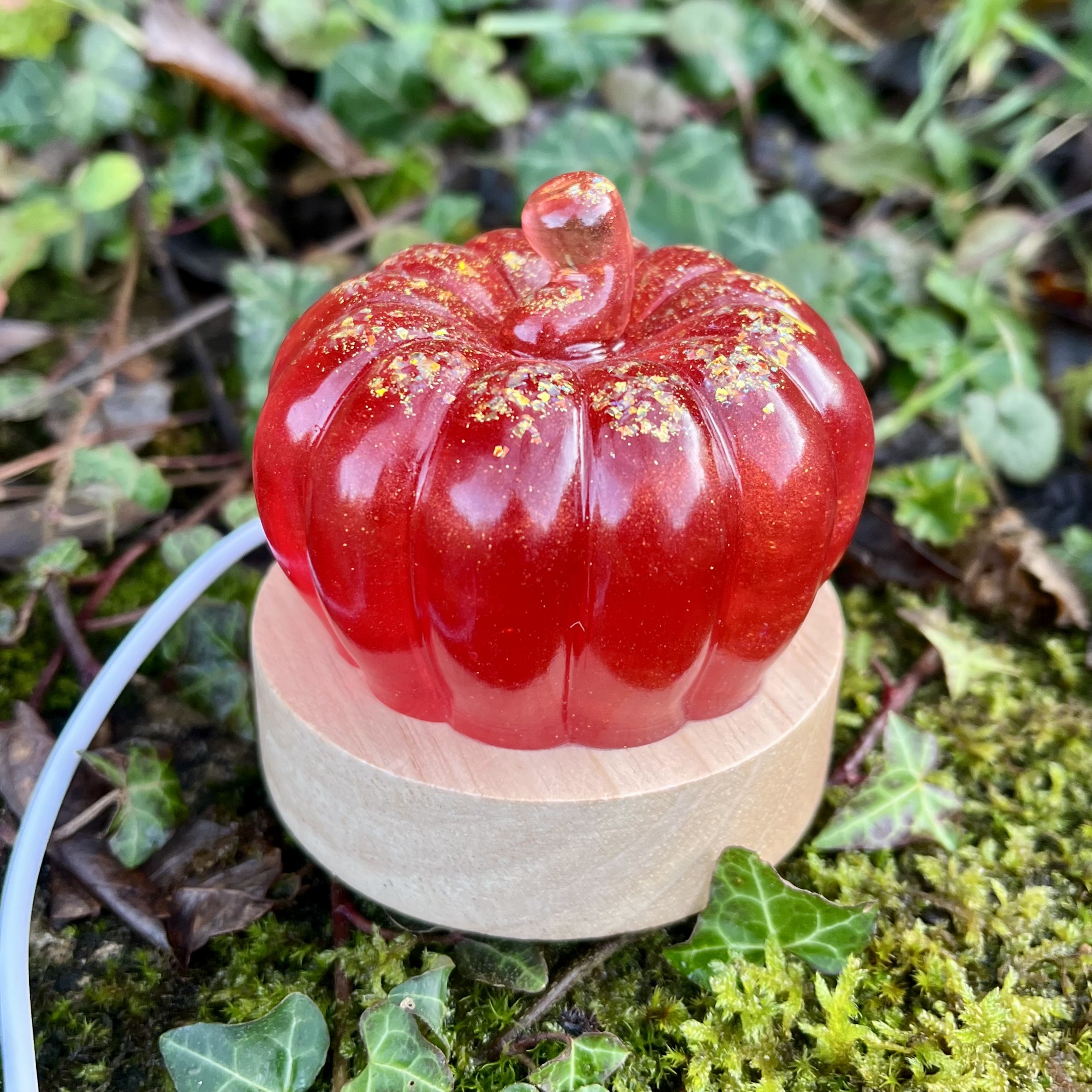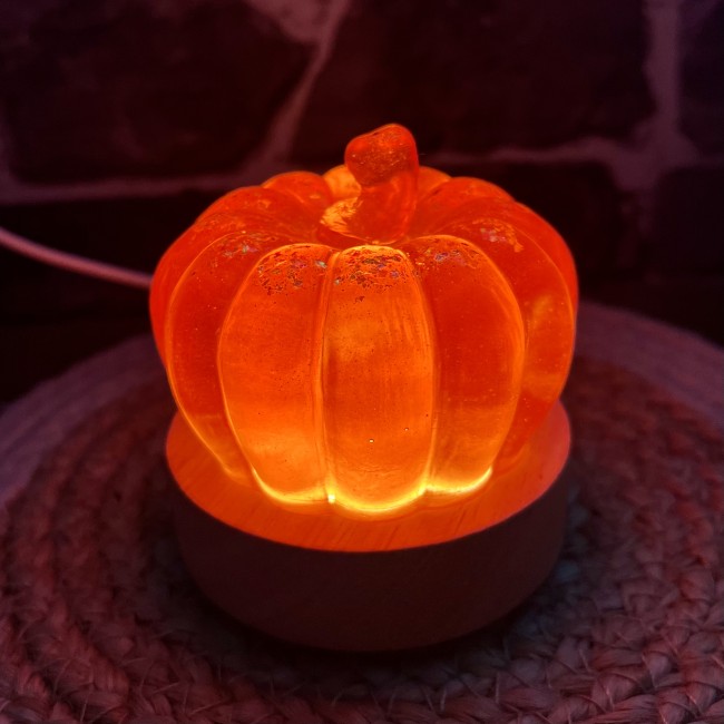 ✰ Lampe citrouille, faite main en résine epoxy avec inclusion de fines paillettes.
