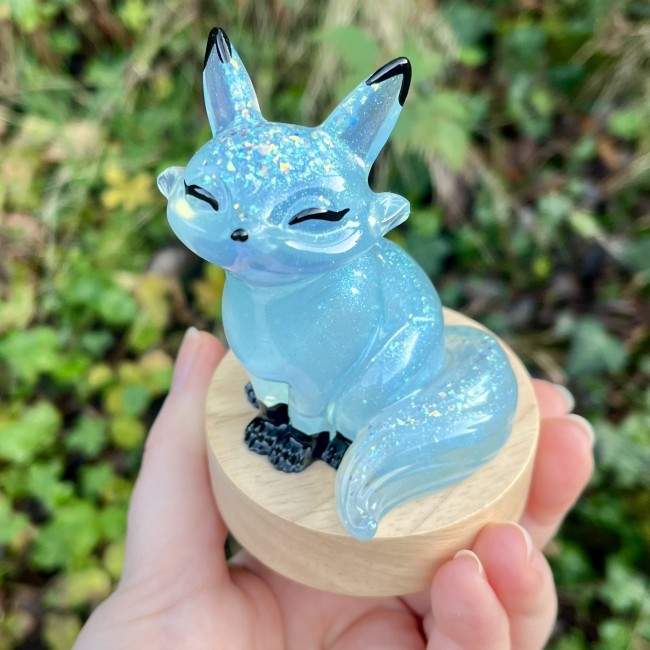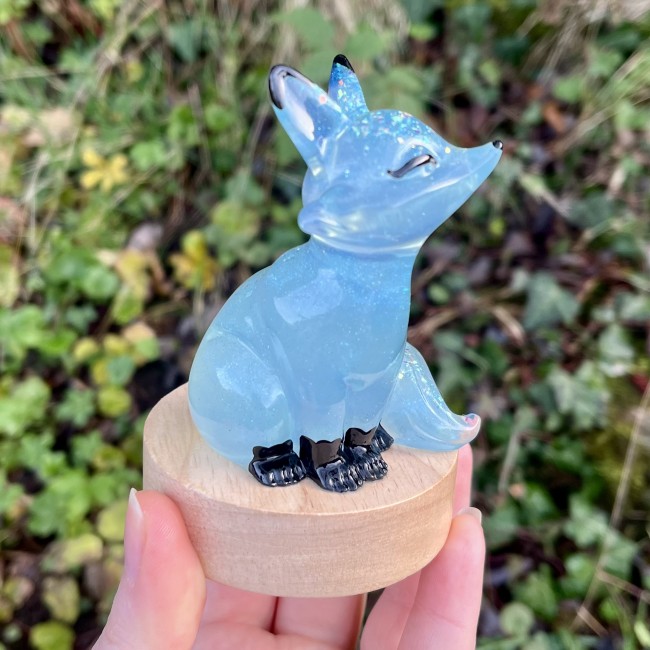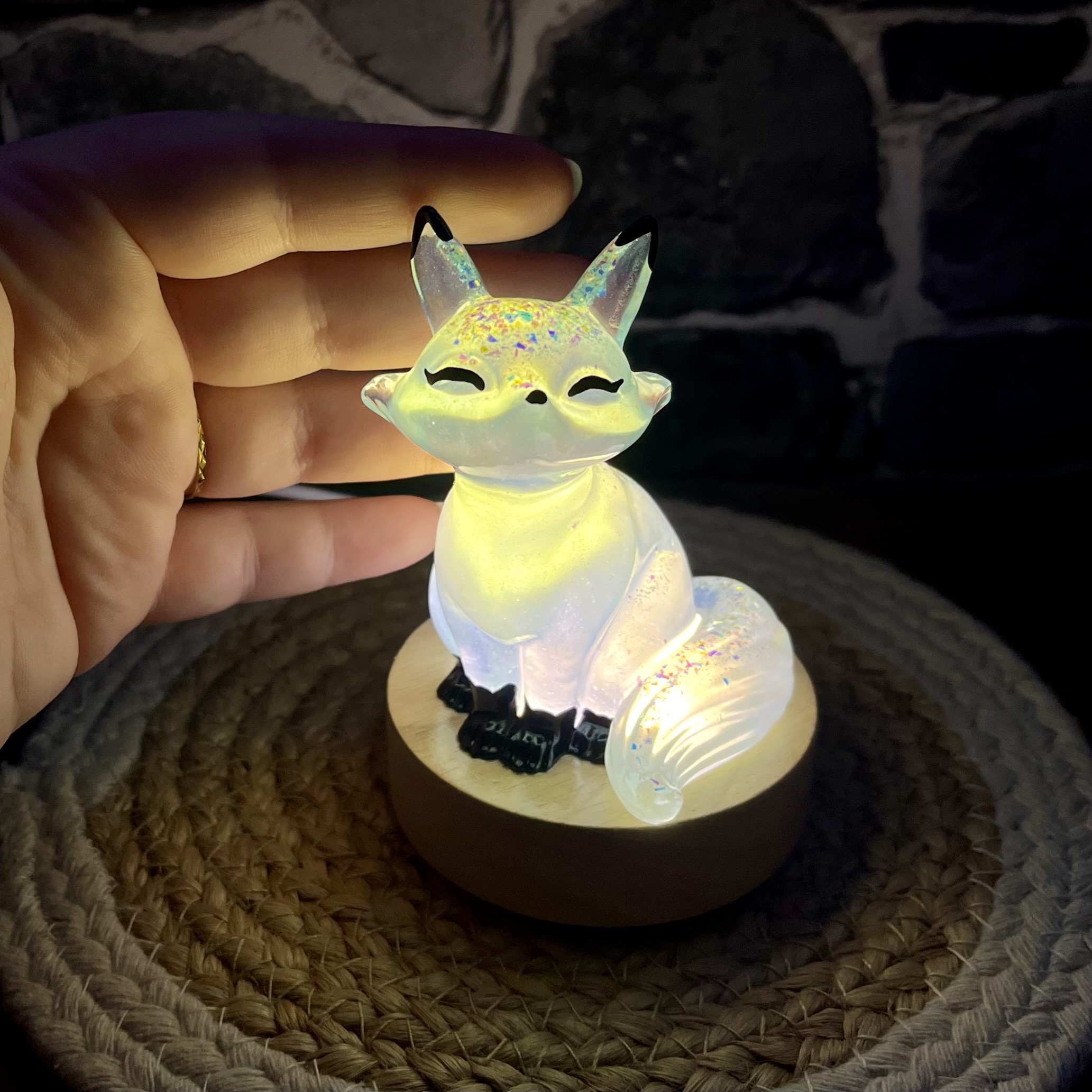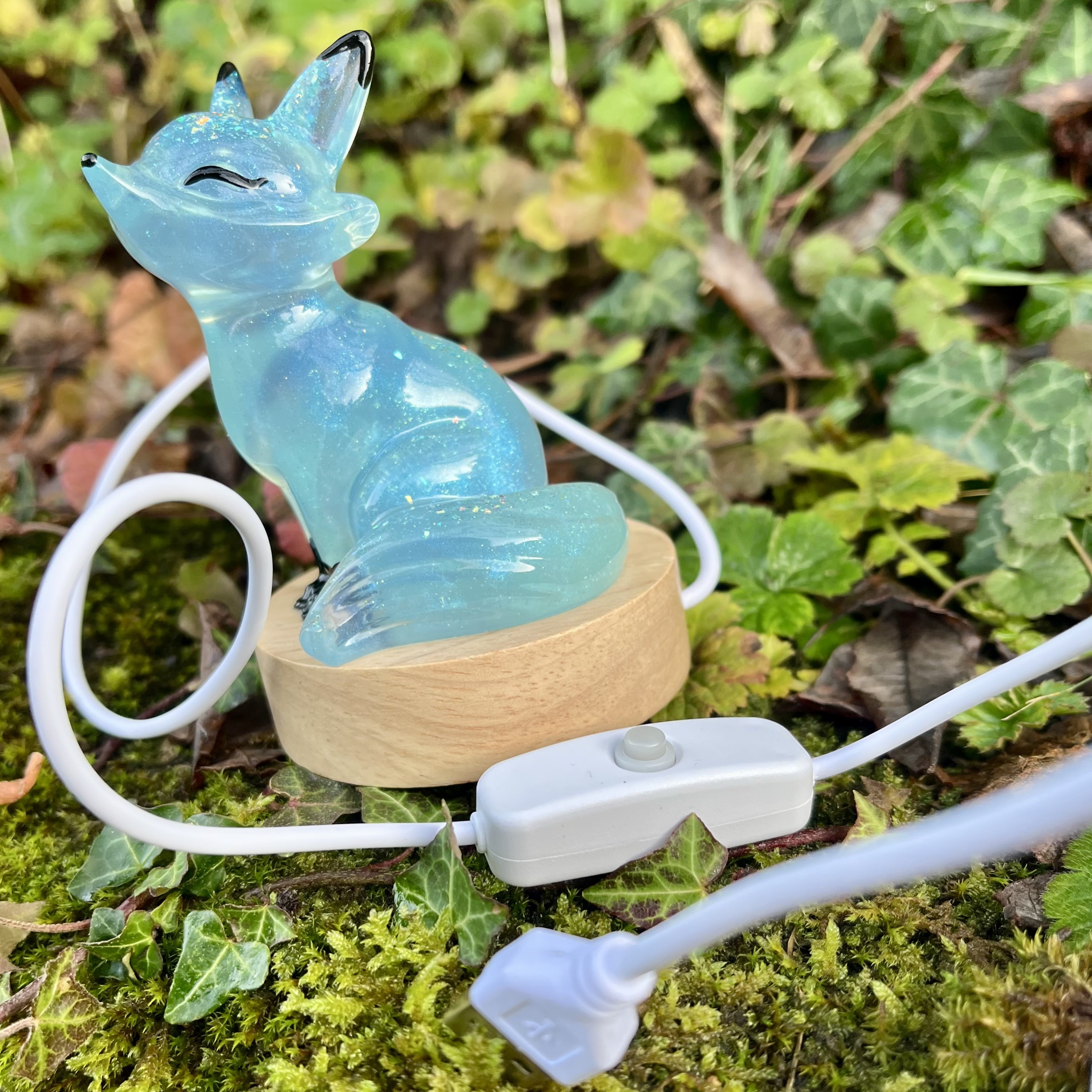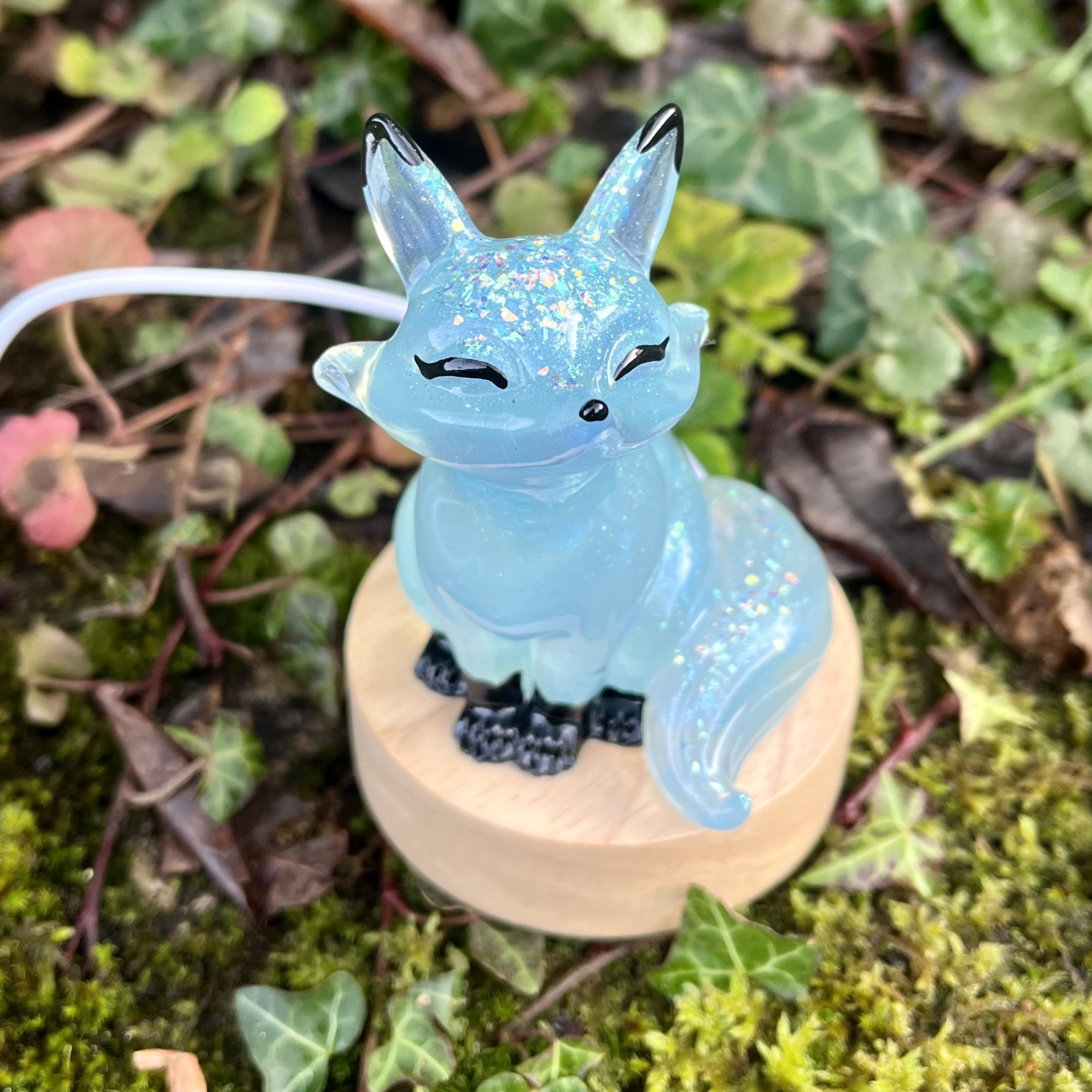 ✰ Lampe Renard, faite main en résine epoxy avec inclusion de fines paillettes.