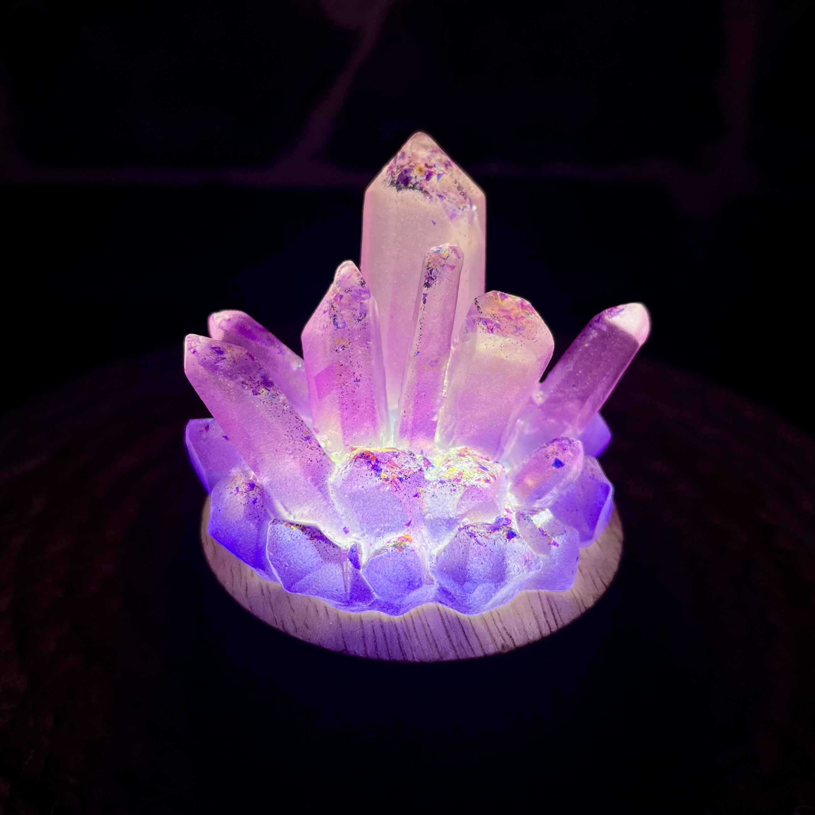 ✰ Lampe cristaux, faite main en résine epoxy avec inclusion de fines paillettes.