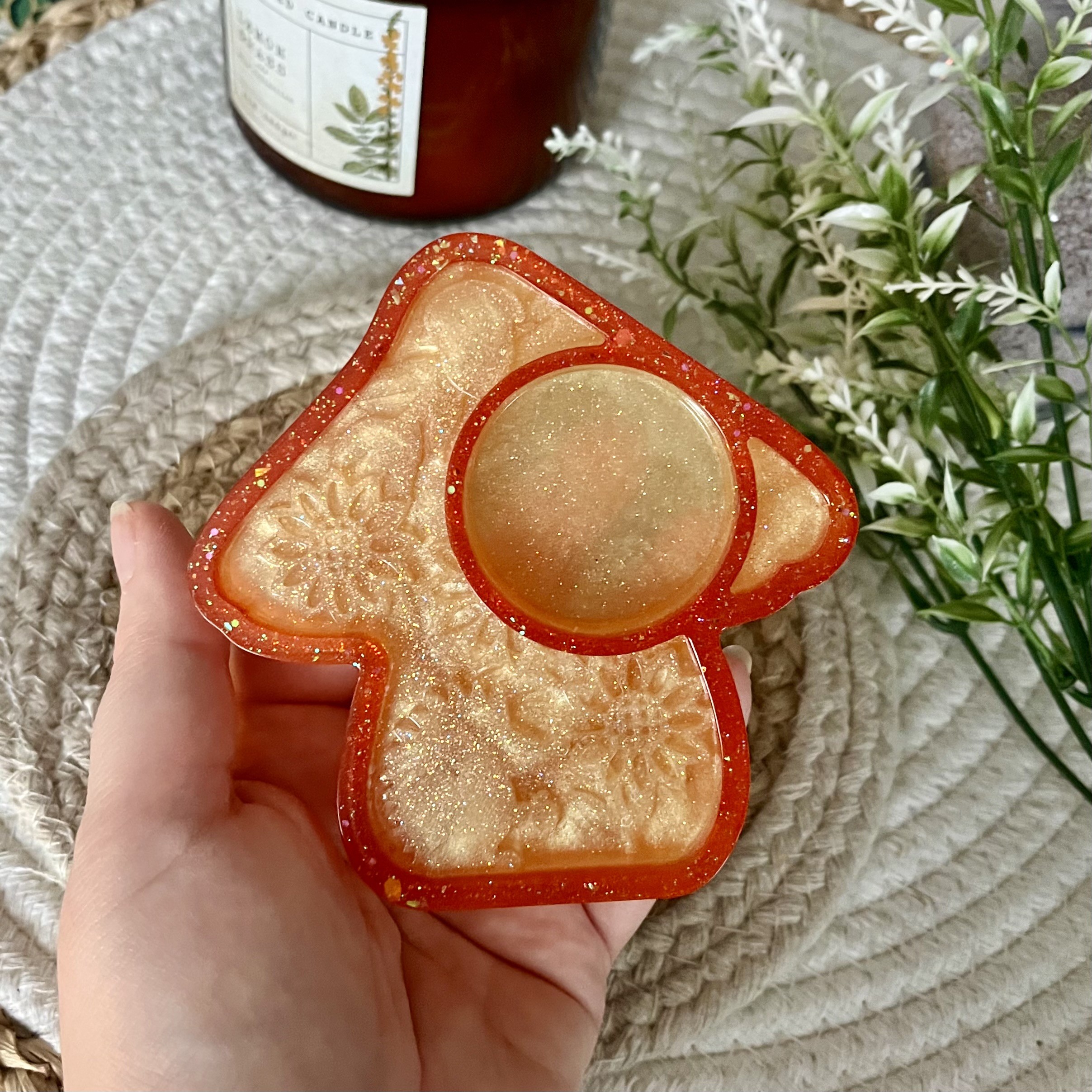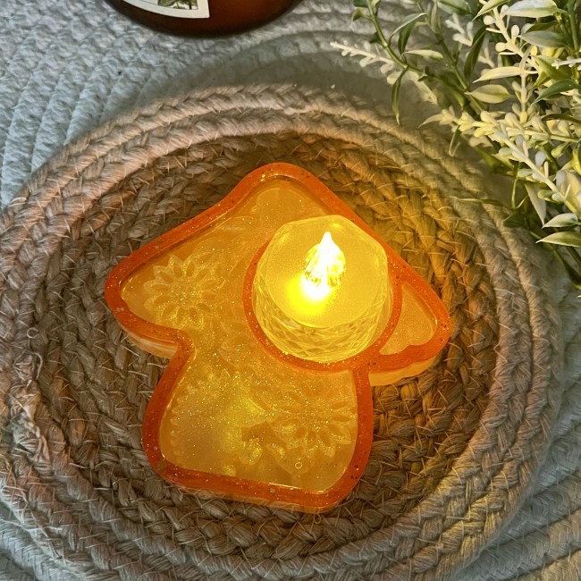 ✰ Photophore champignon avec décoration hérisson, avec inclusion de paillettes ✨