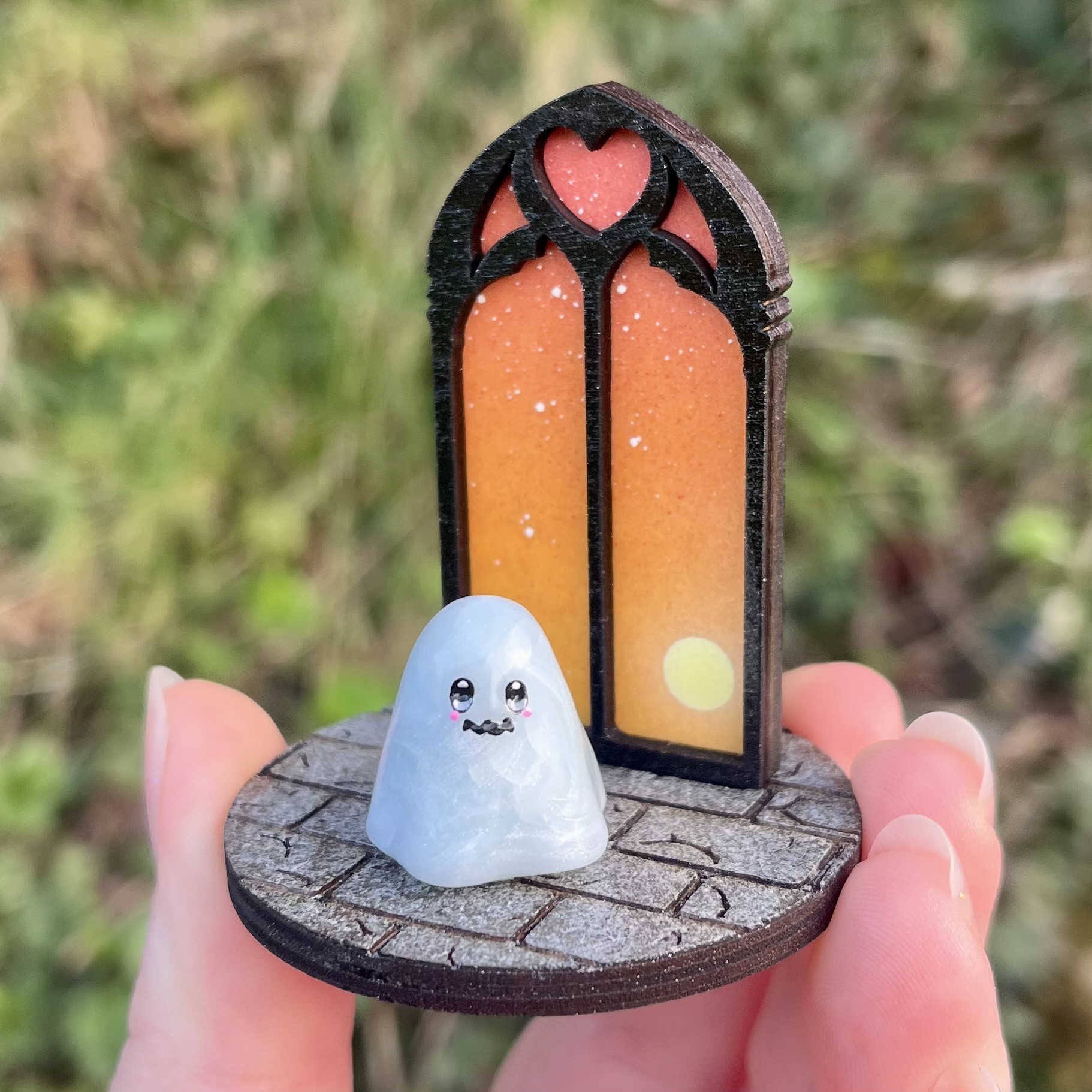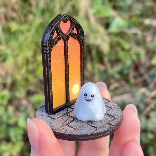 ✰ Figurine Fantôme rotatif dans son décor en bois, entièrement conçue par nos soins.