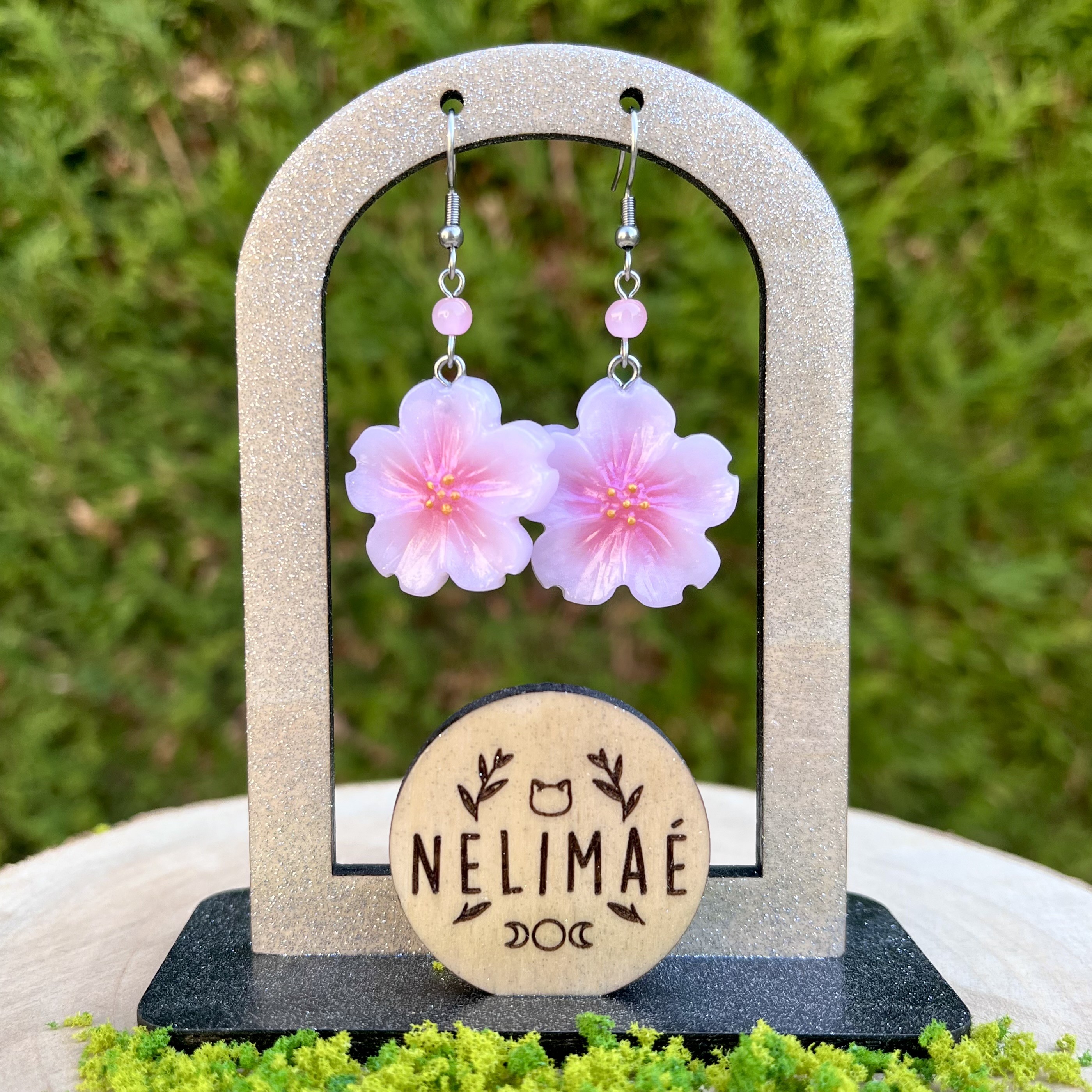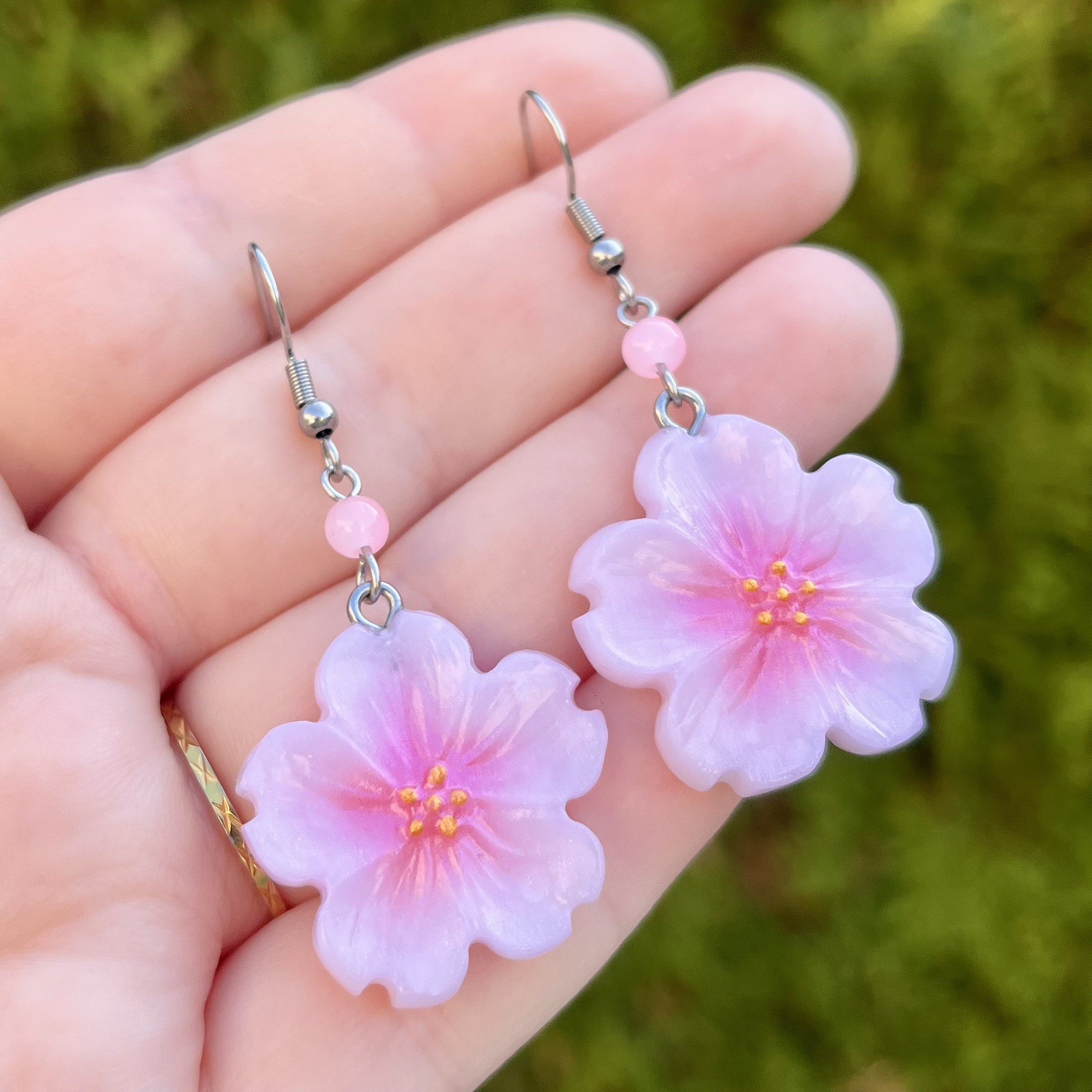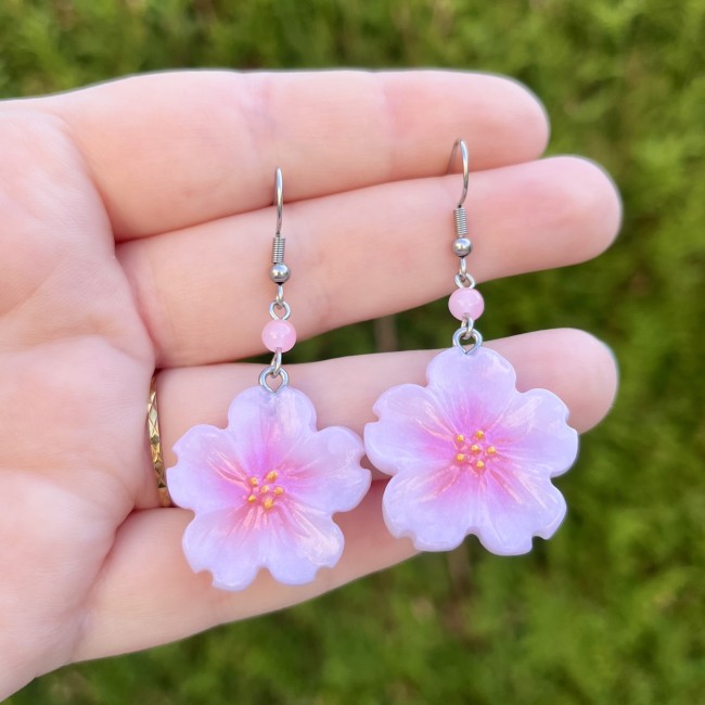 ✰ Paire de boucles d'oreilles fleurs de cerisier faite main en pâte polymère nacrée.