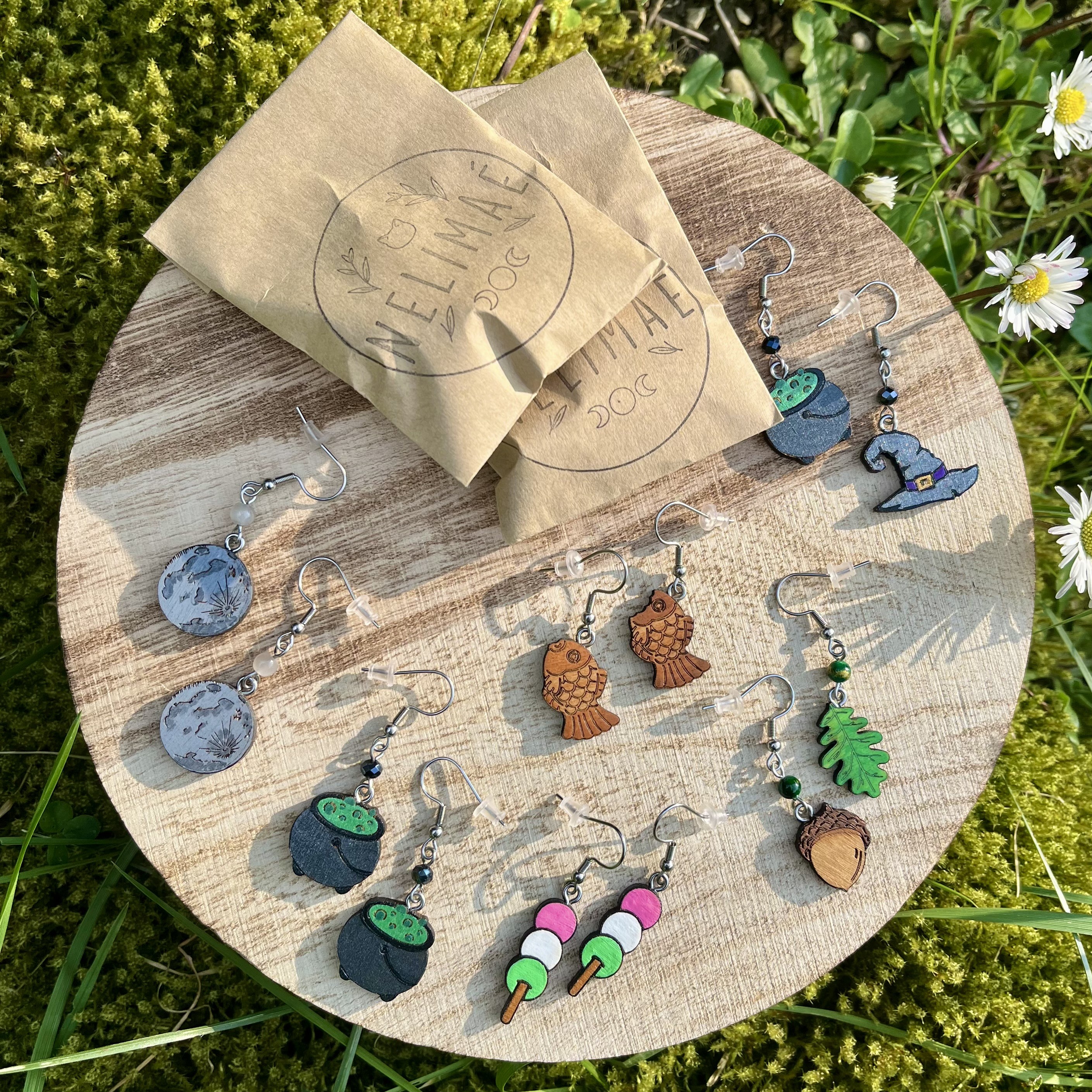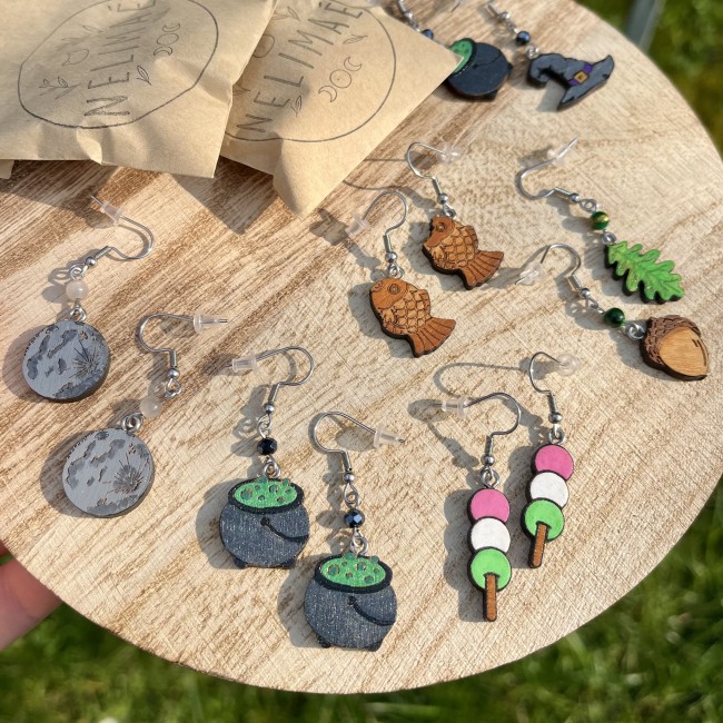 ✰ Paire de boucles d'oreilles légères en bois, entièrement faites main.