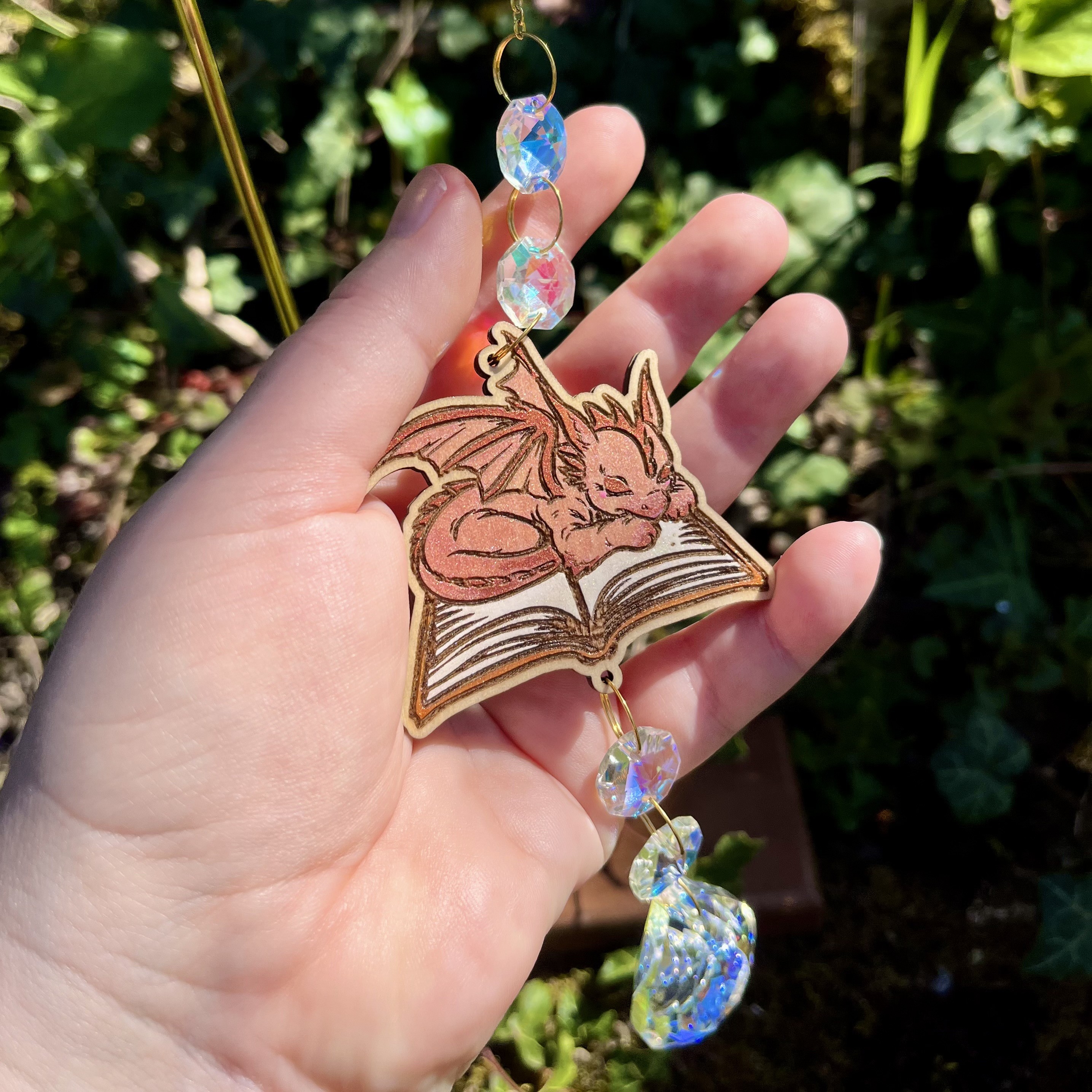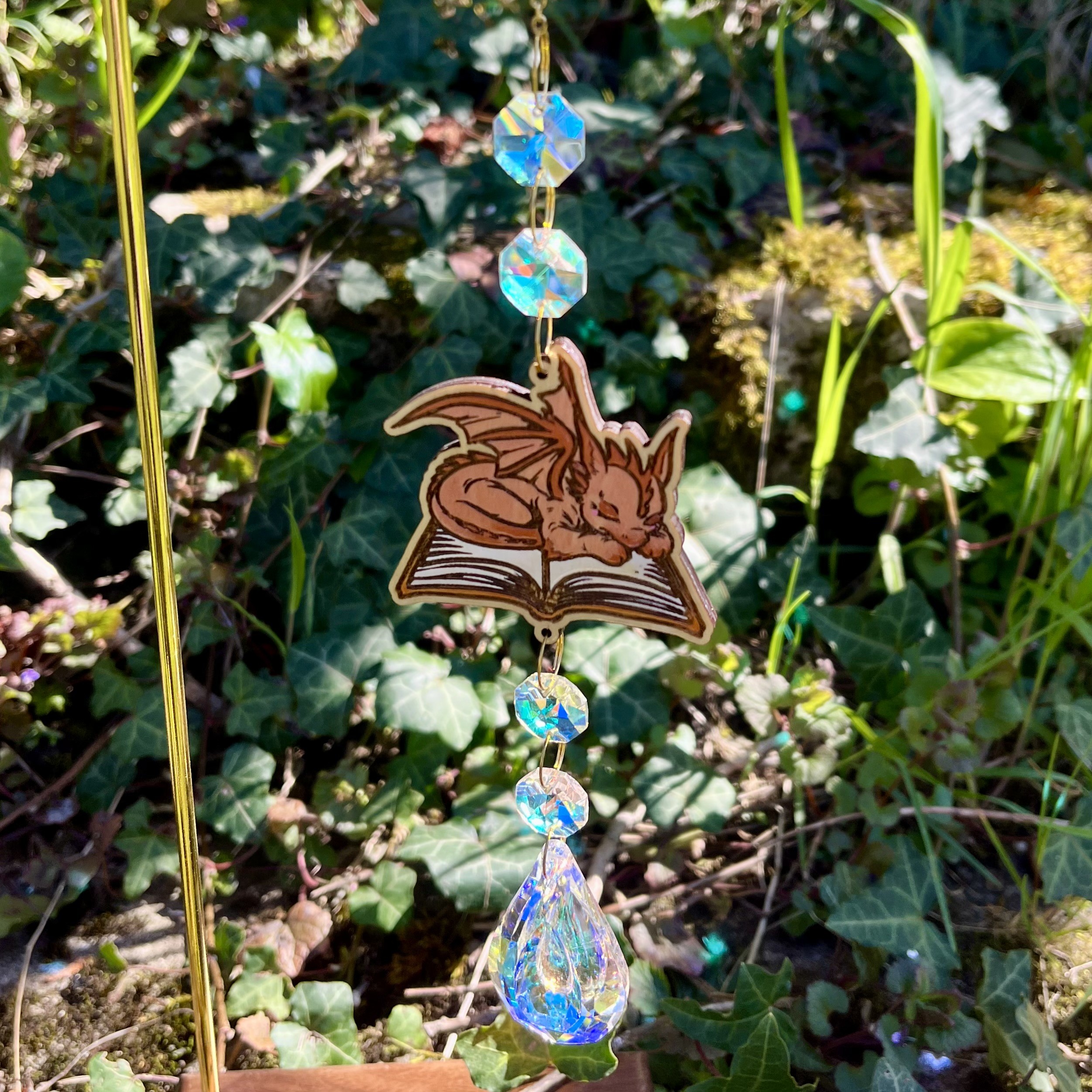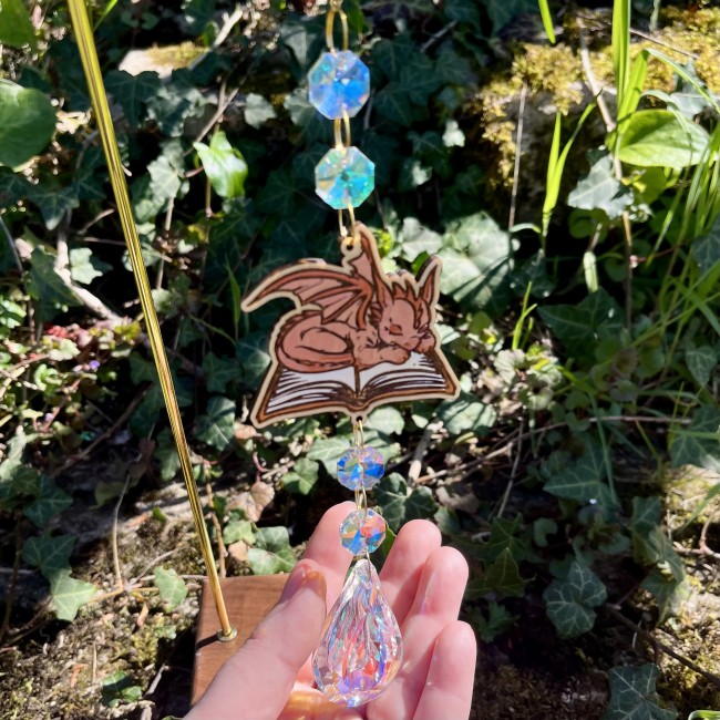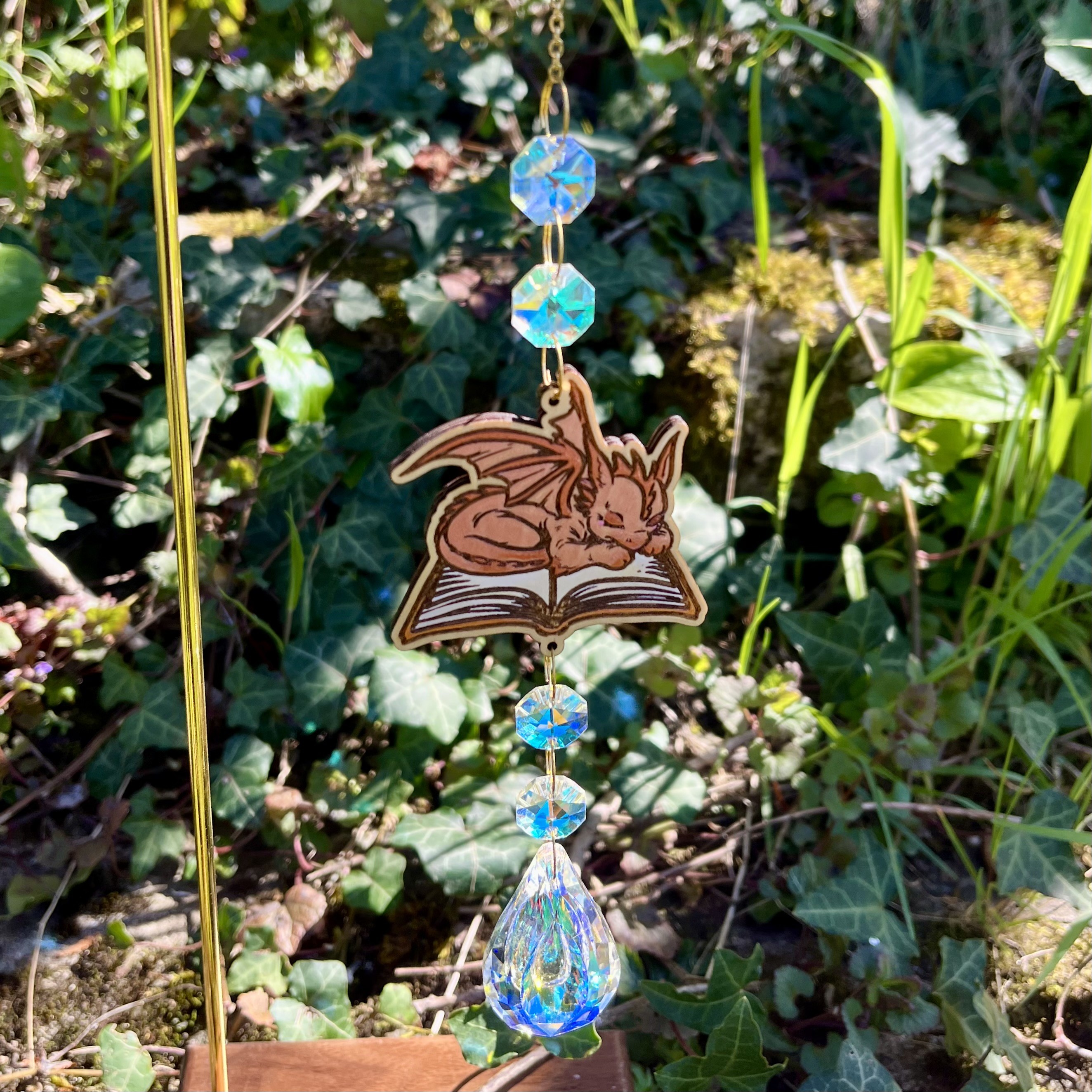 ✰ Décoration à suspendre - Suncatcher dragon sur un livre