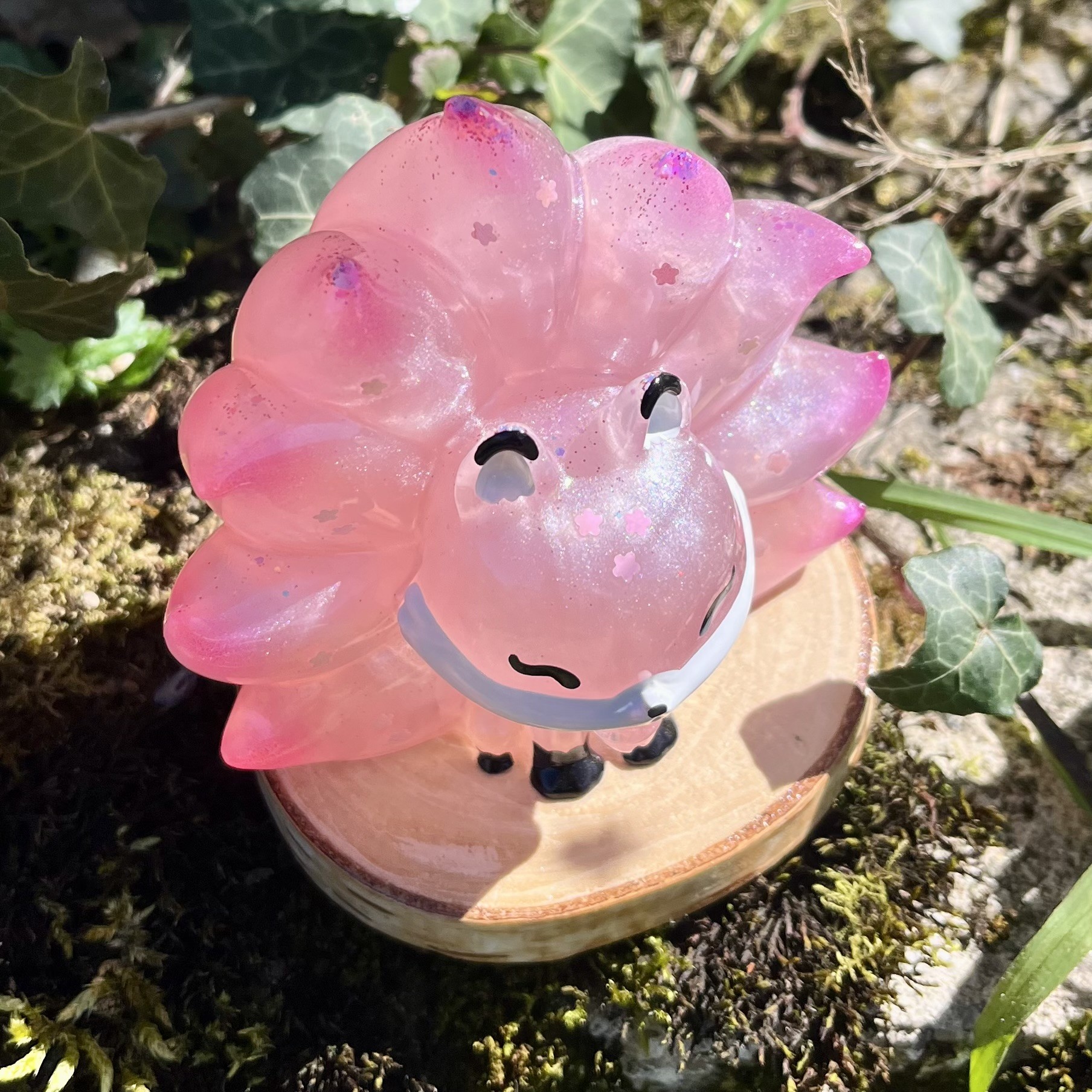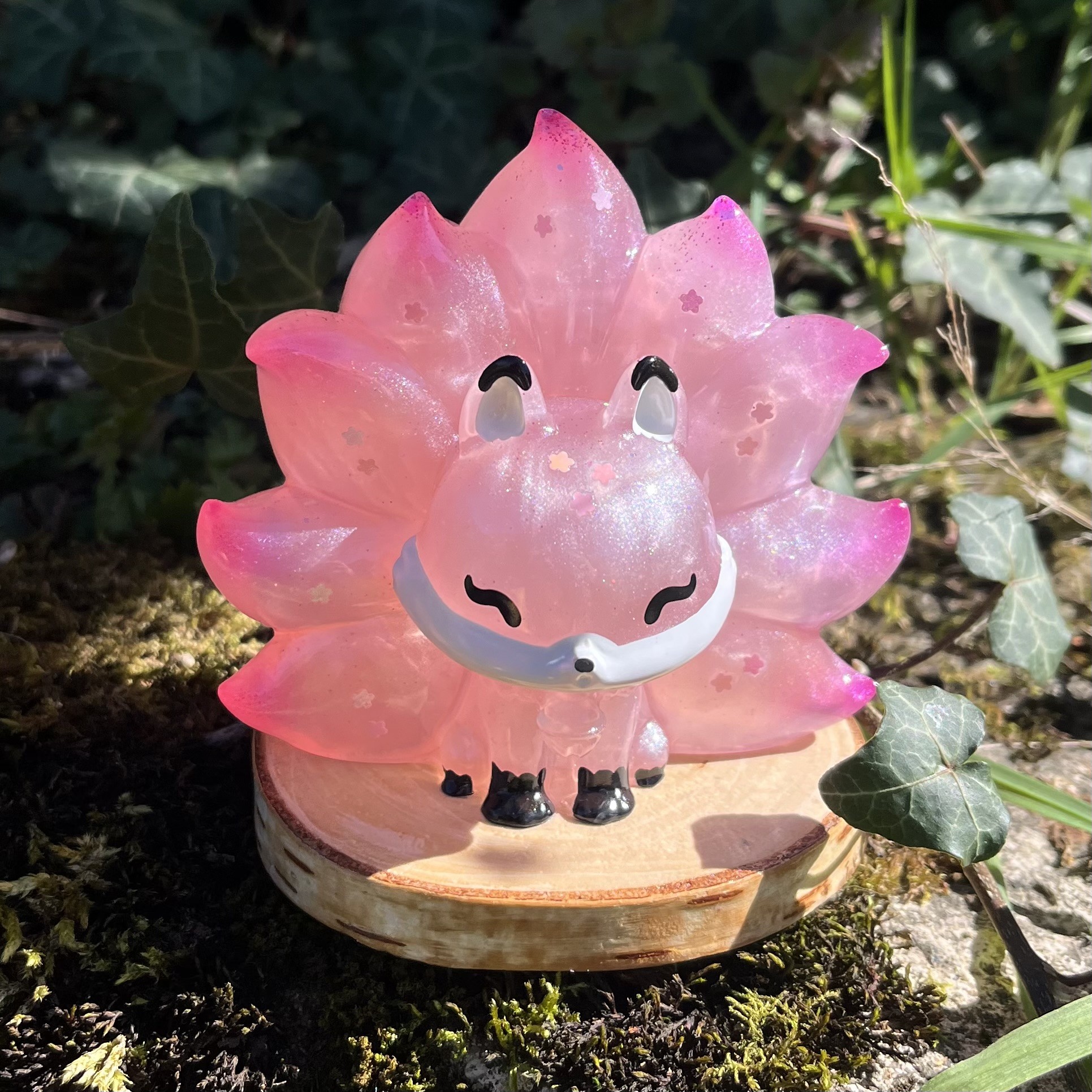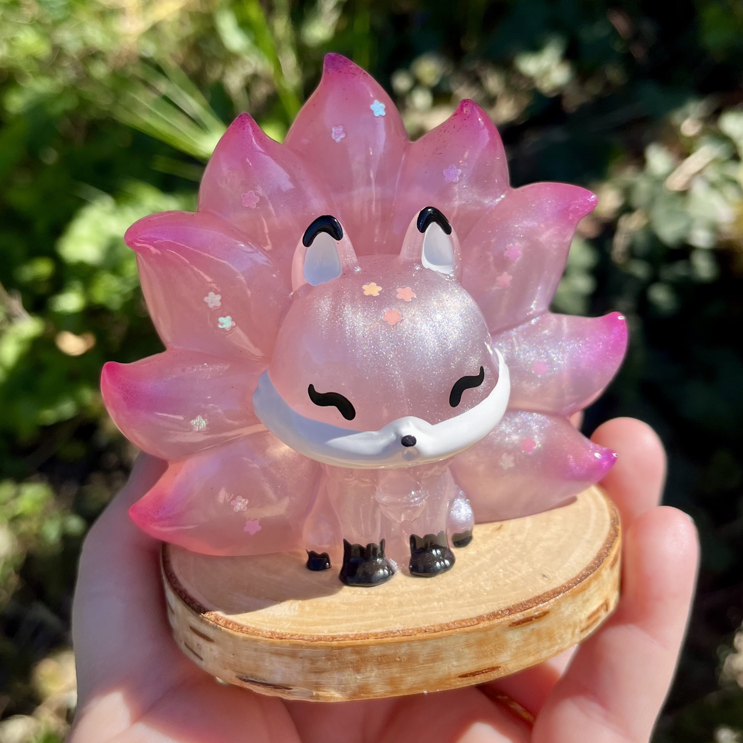 âś° Figurine Kitsune, faite main en résine epoxy avec inclusion de paillettes et pigments irisés.