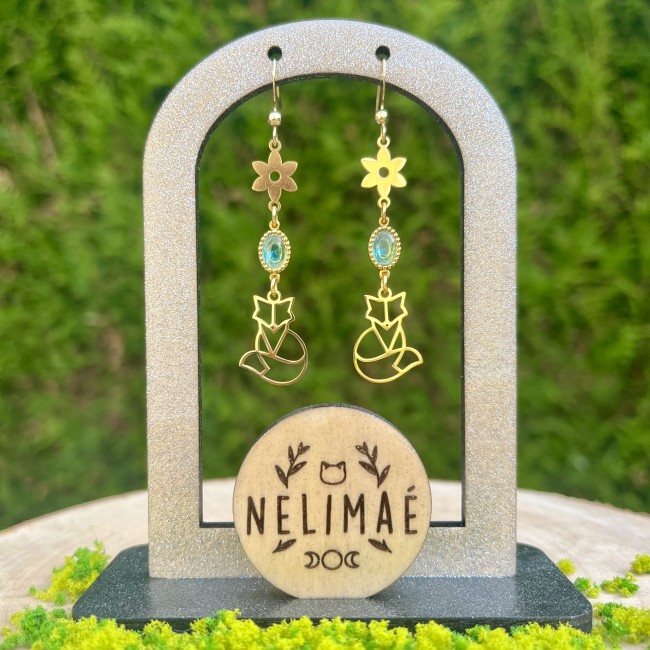 Paire de boucles d'oreilles - Fleurs et renards