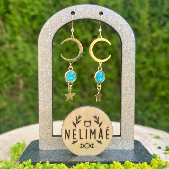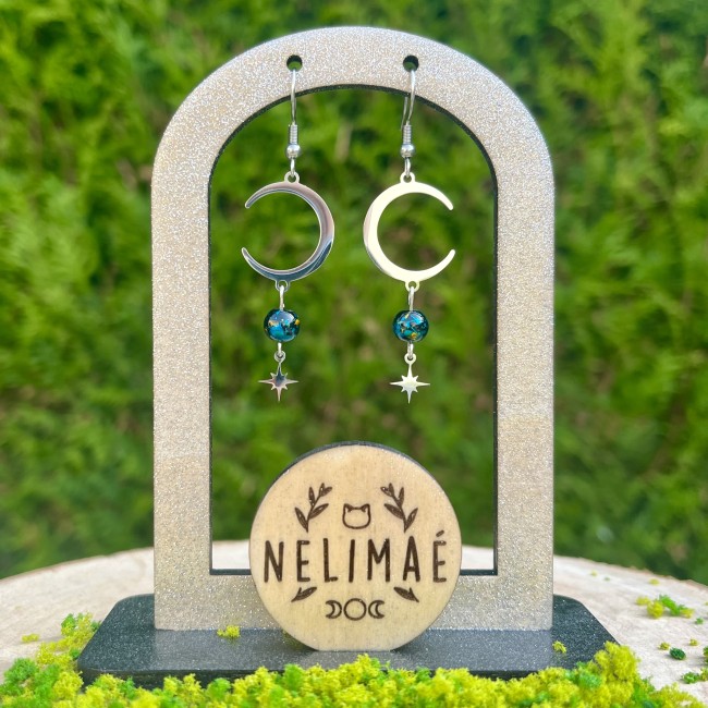 Paire de boucles d'oreilles - lunes et papillons