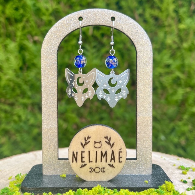Paire de boucles d'oreilles - renards argentés